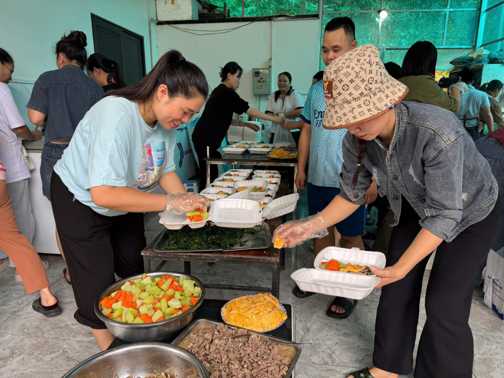 Song song với các hoạt động hỗ trợ nơi ăn, chốn nghỉ, nhiều nhà hàng, quán ăn trong khu vực cũng chung tay góp sức. Tiêu biểu như Nhà hàng Ngon (phường Thục Phán), cửa hàng bánh mì Thu Thắng đã tặng cơm miễn phí mỗi ngày cho người dân và lực lượng tham gia khắc phục hậu quả lũ.