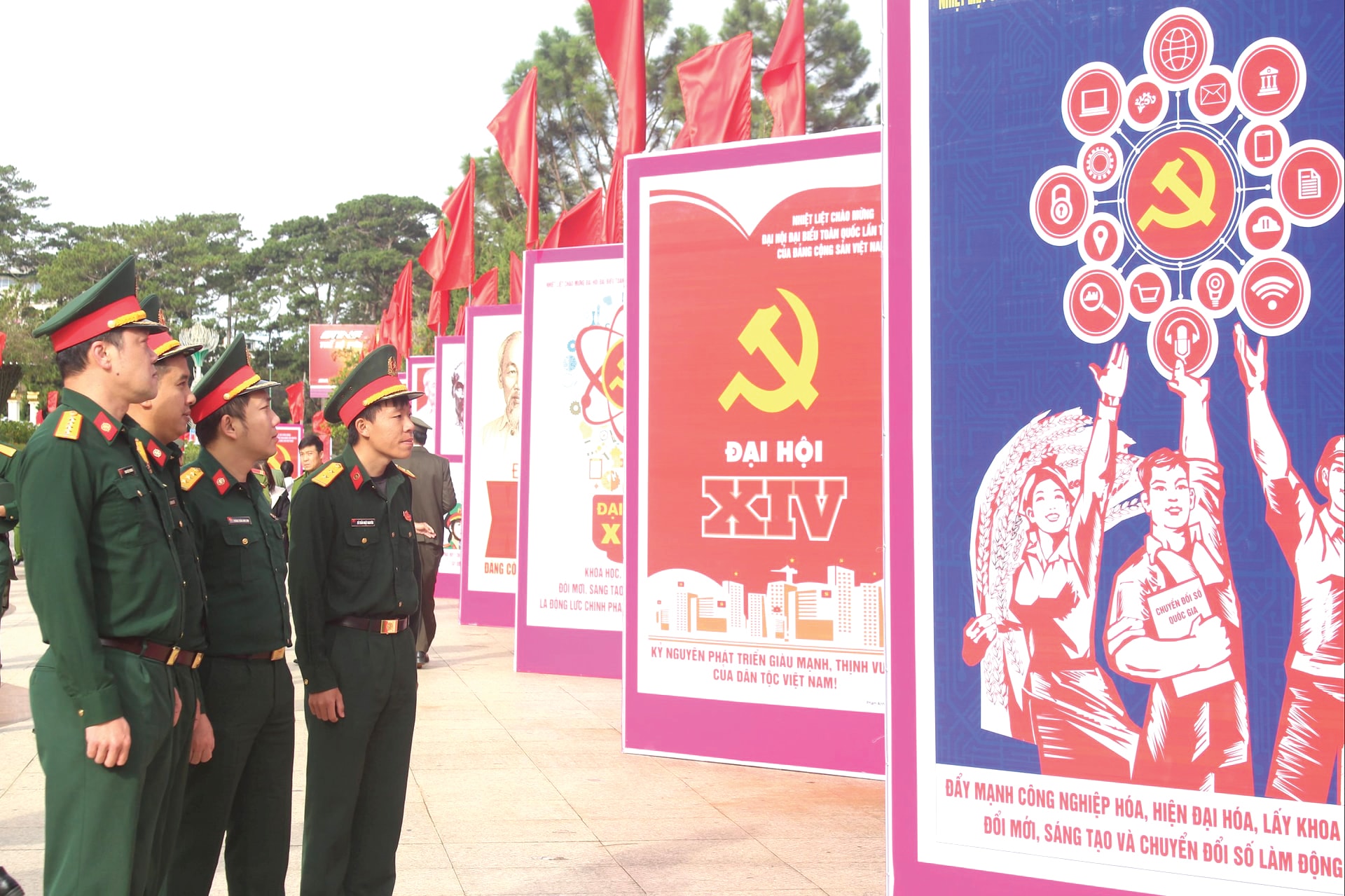 Tỉnh Lâm Đồng phối hợp với Cục Văn hóa cơ sở, Gia đình và Thư viện (Bộ Văn hóa, Thể thao và Du lịch) khai mạc Triển lãm tranh cổ động tấm lớn tuyên truyền Đại hội đại biểu toàn quốc lần thứ XIV của Đảng. Ảnh: Quỳnh Uyển