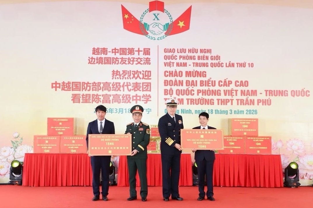 Thay mặt Nhà trường, Phó Hiệu trưởng phụ trách Trường THPT Trần Phú Mai Hoàng Lâm bày tỏ xúc động trân trọng cảm ơn sự quan tâm đặc biệt của Bộ trưởng Bộ Quốc phòng Phan Văn Giang, Bộ trưởng Bộ Quốc phòng Trung Quốc Đổng Quân và Đoàn đại biểu cấp cao hai nước, đây là nguồn động viên to lớn đối với thầy và trò nhà trường.
