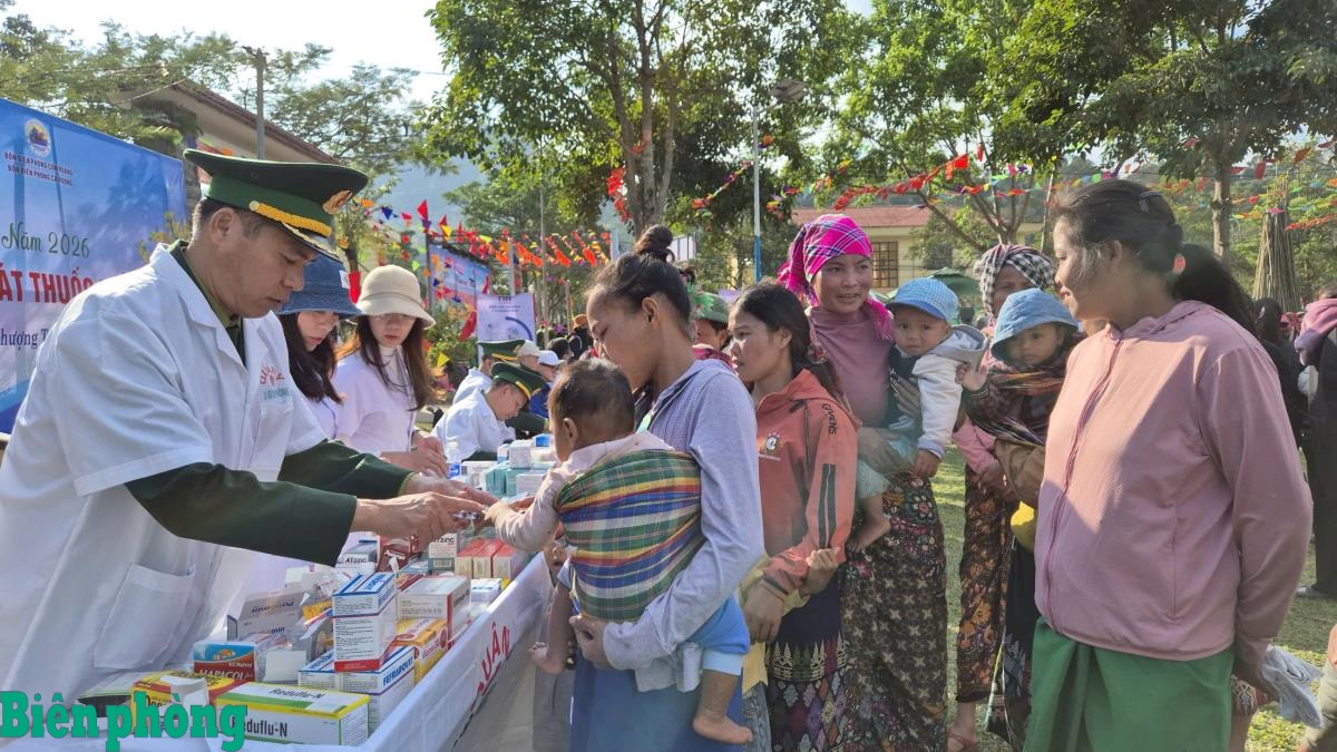 Quân y Đồn Biên phòng Cồn Roàng, Bộ đội Biên phòng tỉnh Quảng Trị khám bệnh, cấp thuốc miễn phí cho nhân dân trong “Xuân Biên phòng ấm lòng dân bản”, năm 2026. Ảnh: Ngọc Hòa