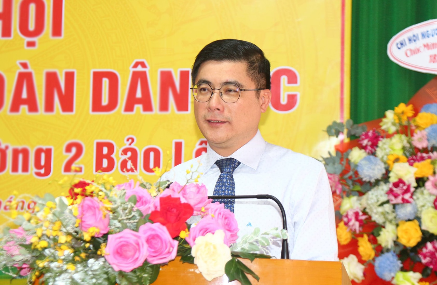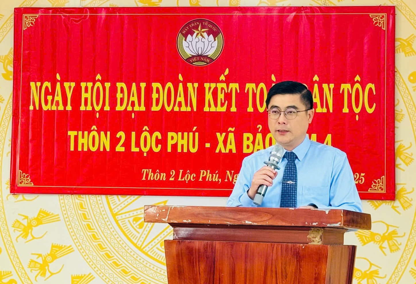 Đồng chí Nguyễn Khắc Bình, Ủy viên Ban Thường vụ Tỉnh ủy, Chánh Văn phòng Tỉnh ủy dự và phát biểu tại Ngày hội Đại đoàn kết toàn dân thôn 2 Lộc Phú, Bảo Lâm 4