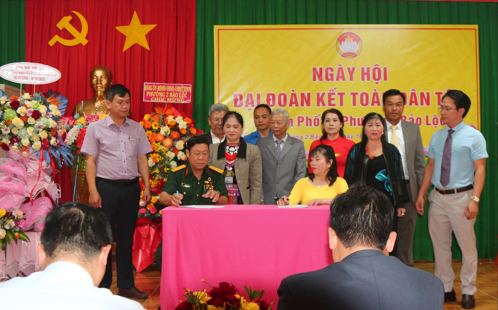 Đồng chí Nguyễn Khắc Bình, Ủy viên Ban Thường vụ Tỉnh ủy, Chánh Văn phòng Tỉnh ủy dự Ngày hội Đại đoàn kết toàn dân tộc tại TDP 27, Phường 2 Bảo Lộc