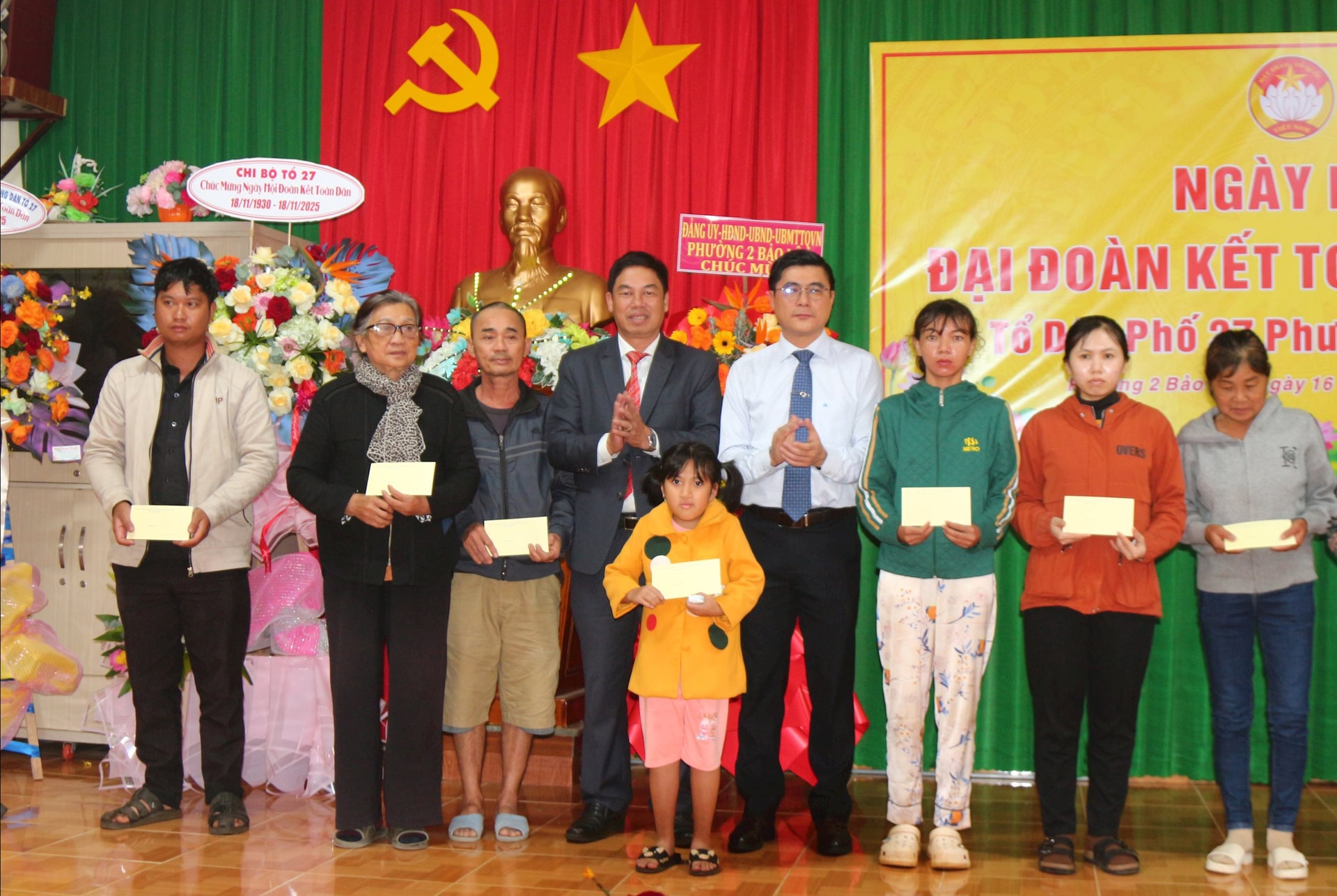 Đảng ủy, HĐND, UBND, Ủy ban MTTQ Việt Nam Phường 2 Bảo Lộc cũng tặng quà và hoa đến cán bộ và Nhân dân TDP 27, trao nhiều suất quà cho người dân có hoàn cảnh khó khăn địa phương.