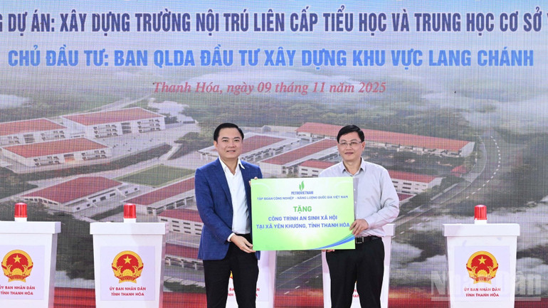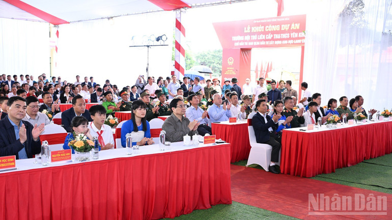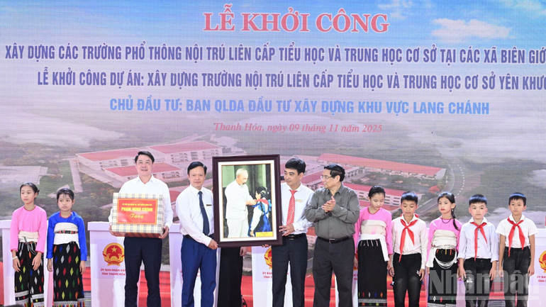 Tại buổi lễ, Thủ tướng Phạm Minh Chính và các đồng chí lãnh đạo đã thực hiện nghi thức khởi công đồng loạt các trường. Nhân dịp này, Thủ tướng tặng quà các thầy cô giáo, các cháu học sinh xã Yên Khương. Tập đoàn Petrovietnam tặng một công trình an sinh xã hội cho xã Yên Khương, tỉnh Thanh Hóa.