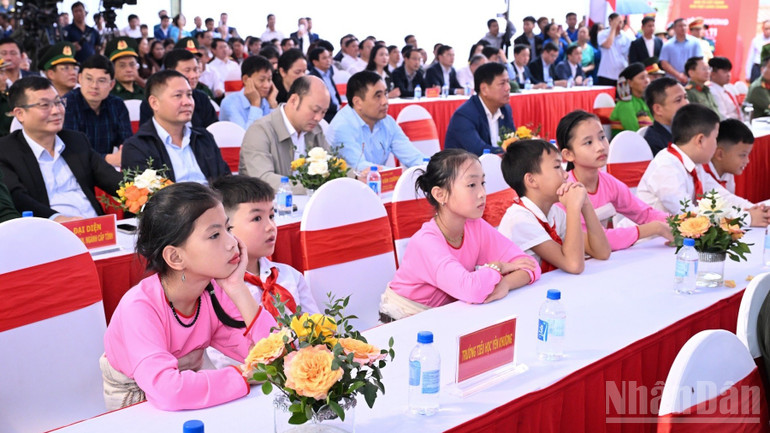 Hôm nay, từ điểm cầu chính và các điểm cầu trực tuyến tại các xã biên giới, chúng ta rất vui mừng chứng kiến niềm vui chung lan tỏa dọc chiều dài biên giới Tổ quốc - nơi đâu cũng có ánh mắt rạng ngời, phấn khởi của các thầy cô giáo, các em học sinh và nhân dân được chứng kiến các trường nội trú liên cấp tiểu học và trung học cơ sở được khởi công, góp phần lan tỏa tinh thần nhân văn và trách nhiệm xã hội trong hành trình gieo chữ nơi biên cương.