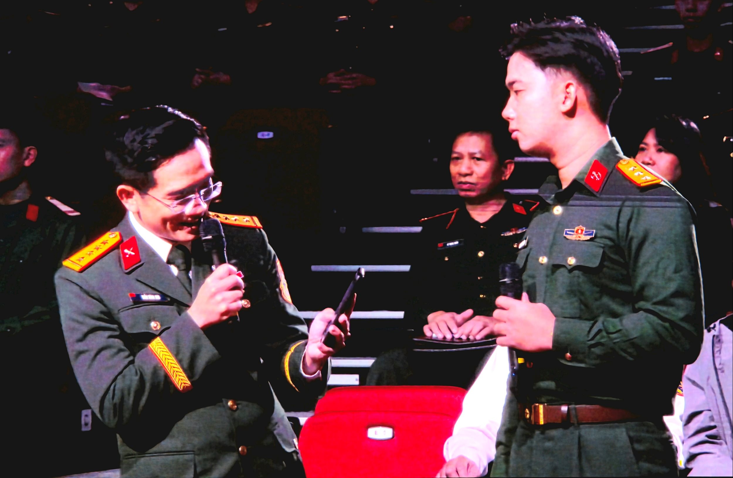 Tiếp đó, tiểu phẩm "Vòng xoáy ma mị" khắc họa hiệu quả mô hình "Tổ tư vấn tâm lý, pháp lý quân nhân", với câu chuyện mở đầu đầy kịch tính nhưng kết thúc tích cực, gửi thông điệp về ý nghĩa nhân văn của việc lắng nghe, hỗ trợ đồng đội bằng pháp luật.