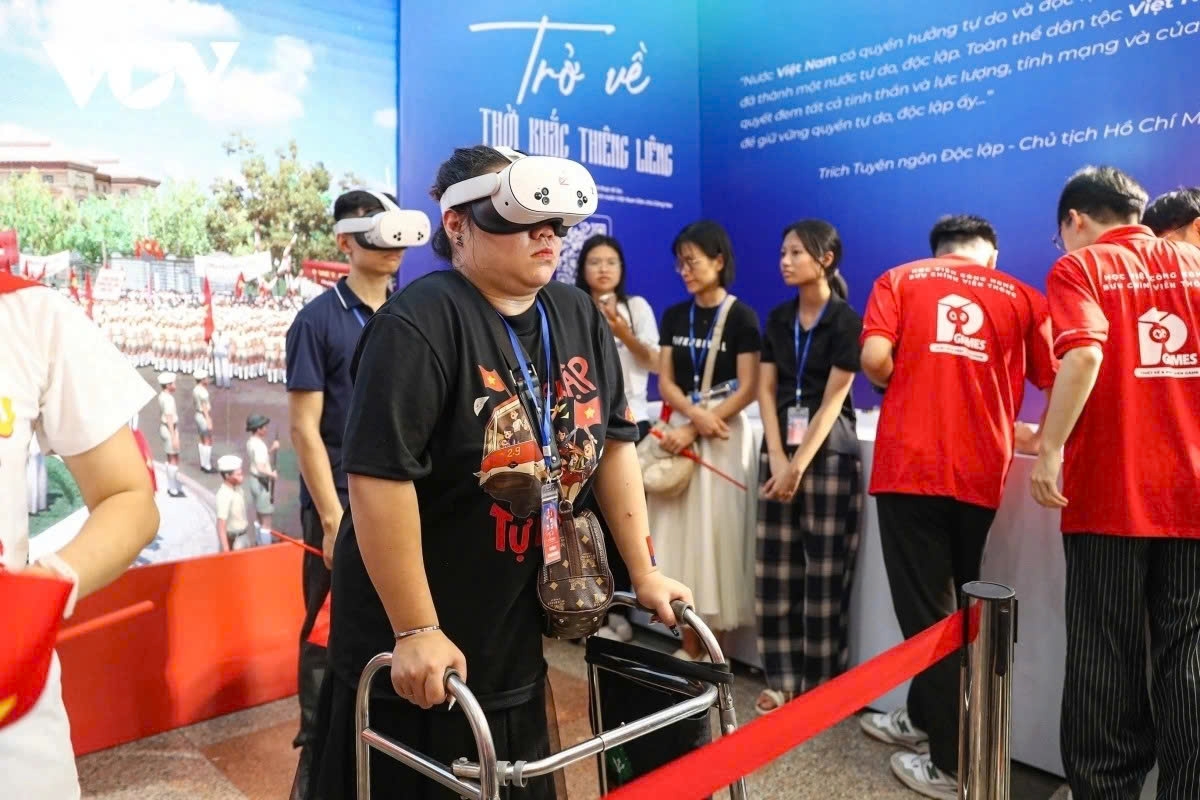 Không gian "Trở về thời khắc thiêng liêng" của Đài Tiếng nói Việt Nam (VOV) tại Triển lãm 80 năm Thành tựu đất nước thu hút nhiều người tham gia trải nghiệm công nghệ VR cho tới ngày kết thúc triển lãm