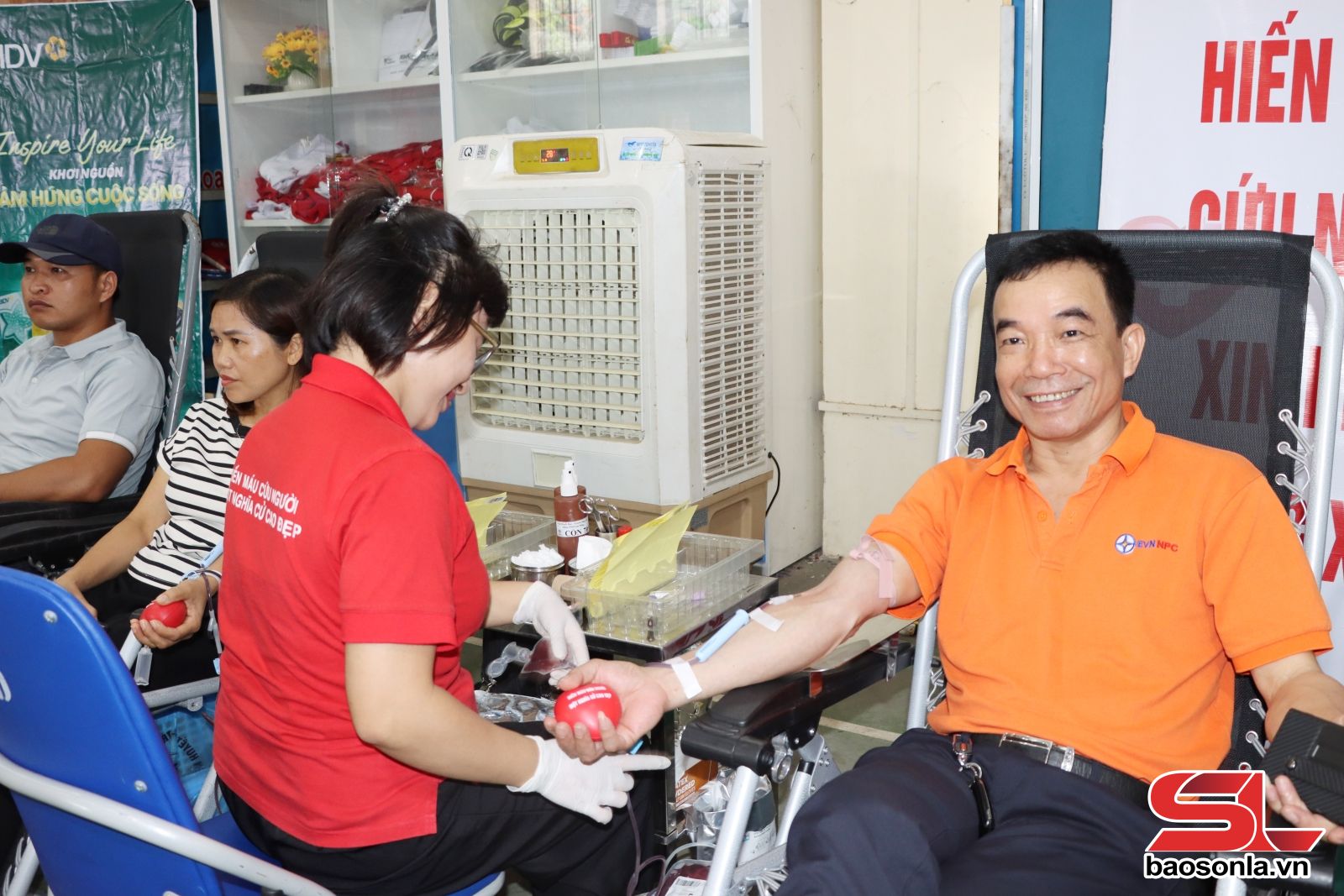 Cán bộ Công ty Điện lực Sơn La tham gia hiến máu cứu người.