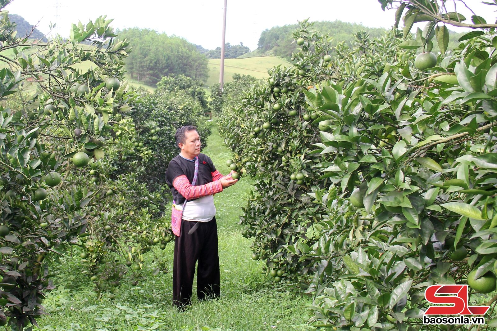 Mô hình trồng cam theo hướng hữu cơ của đảng viên Tráng A Cao, bản Hua Tạt, xã Vân Hồ.