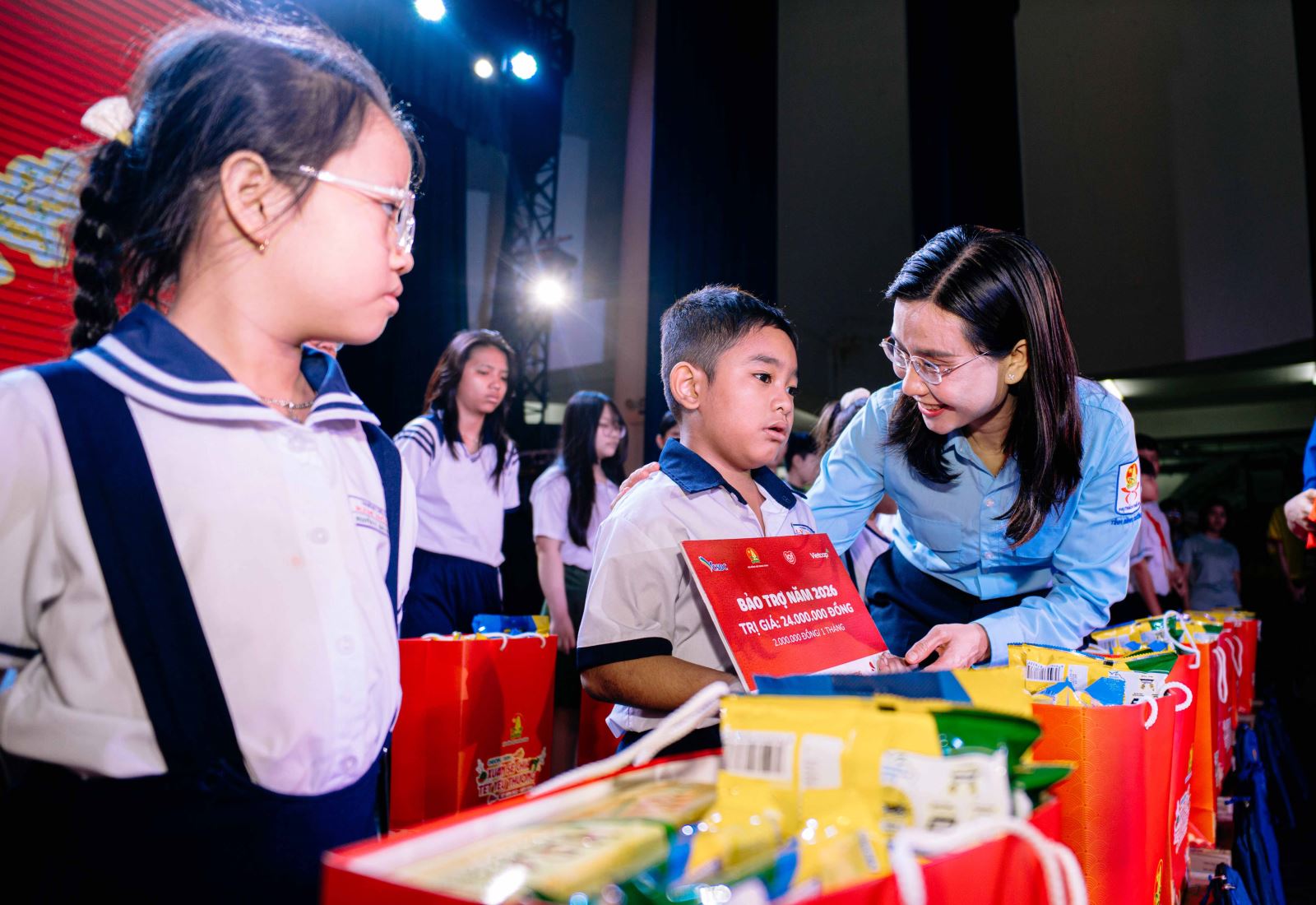 Tại chương trình ở TP Hồ Chí Minh, Hội đồng Đội Trung ương tiếp tục triển khai hoạt động bảo trợ năm 2026 cho 703 em thiếu nhi mồ côi cha mẹ do ảnh hưởng của đại dịch COVID-19 tại 19 tỉnh, thành phố với tổng kinh phí hơn 16,8 tỷ đồng. Riêng tại TP Hồ Chí Minh, ban tổ chức cũng đã trao bảo trợ và quà Tết cho 285 em thiếu nhi mồ côi, với tổng trị giá hơn 6,8 tỷ đồng. Theo đó, mỗi em được hỗ trợ 24 triệu đồng/năm cùng balo học sinh, sữa và phần quà Tết trị giá 930.000 đồng.