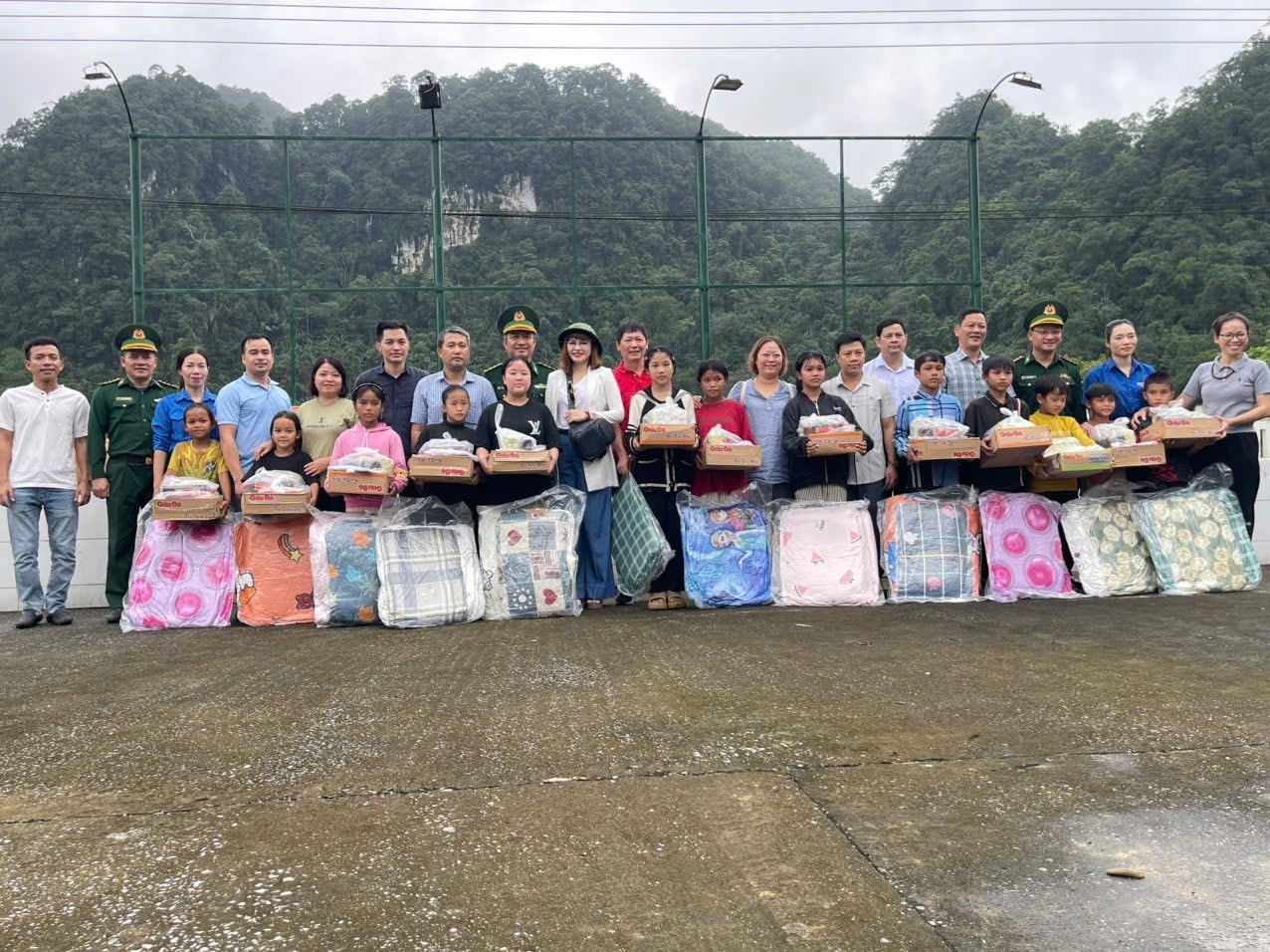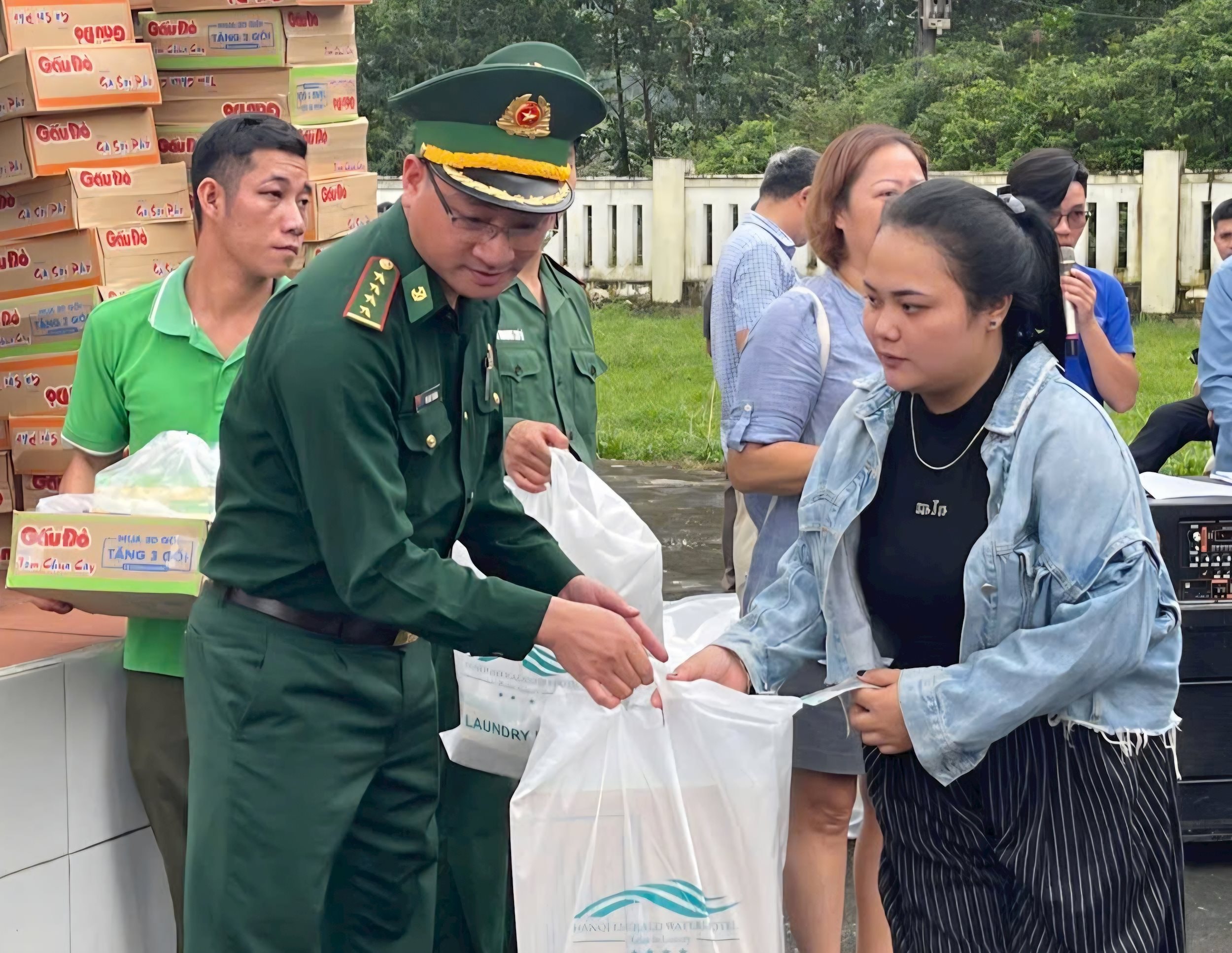 Đồn Biên phòng Cà Xèng phối hợp Đoàn Thiện nguyện Phố Cổ Hà Nội trao 500 suất quà trị giá hơn 500 triệu đồng cho người dân và học sinh bị ảnh hưởng mưa bão.
