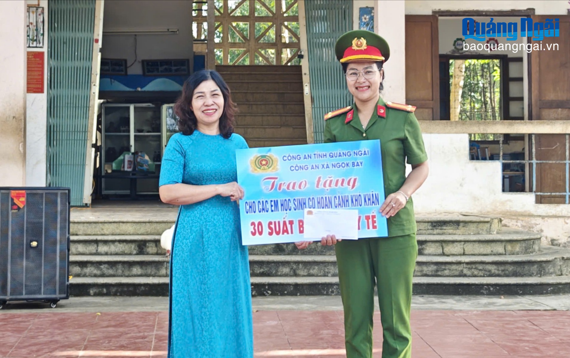 Hoạt động trao thẻ BHYT, triển khai mô hình “Con nuôi Công an xã”, chương trình “Mẹ đỡ đầu” và lồng ghép tuyên truyền pháp luật tại trường học trên địa bàn là các hoạt động thường xuyên của Công an xã Ngọk Bay. Qua đó, góp phần chung tay chăm lo sức khỏe, chia sẻ khó khăn và động viên tinh thần, tiếp thêm động lực học tập cho học sinh có hoàn cảnh khó khăn... Đồng thời lan tỏa hình ảnh người chiến sĩ Công an nhân dân “cách mạng, chính quy, tinh nhuệ, vì nhân dân phục vụ”.