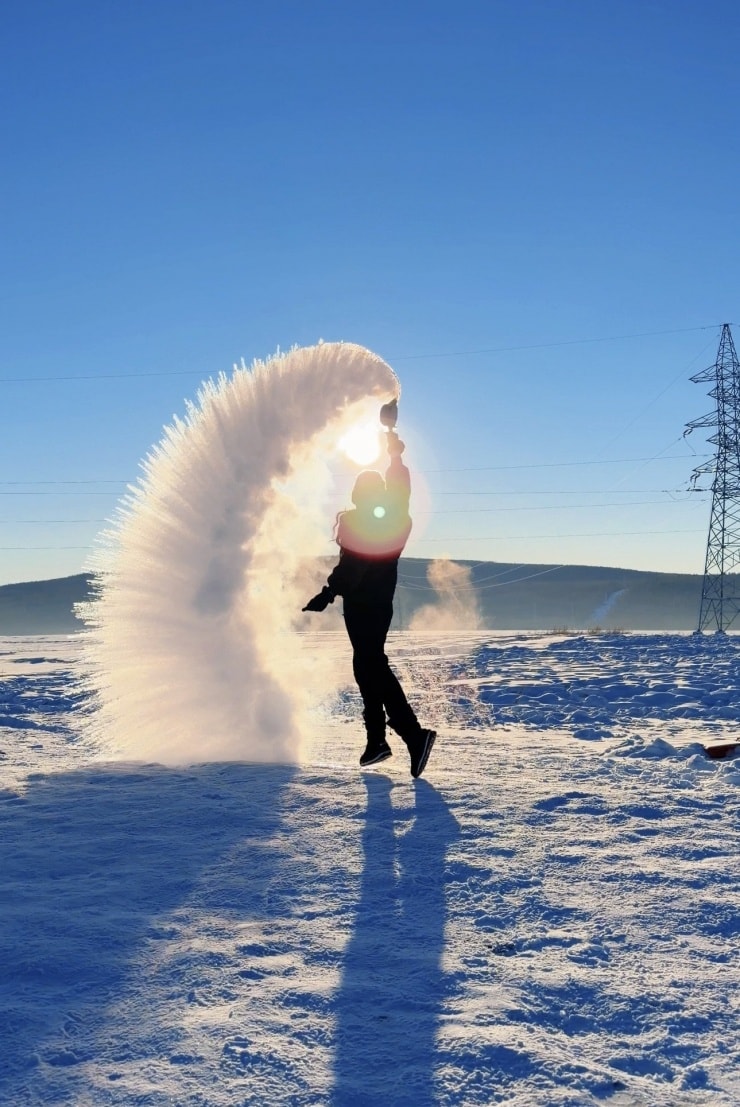 Trải nghiệm hất nước sôi lên không trung hóa băng tuyết trong giây lát