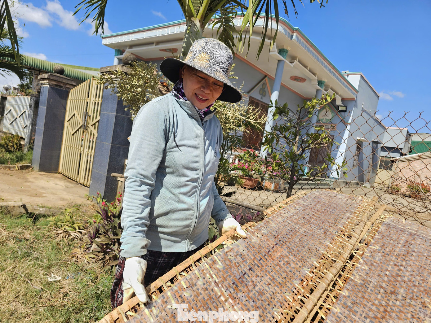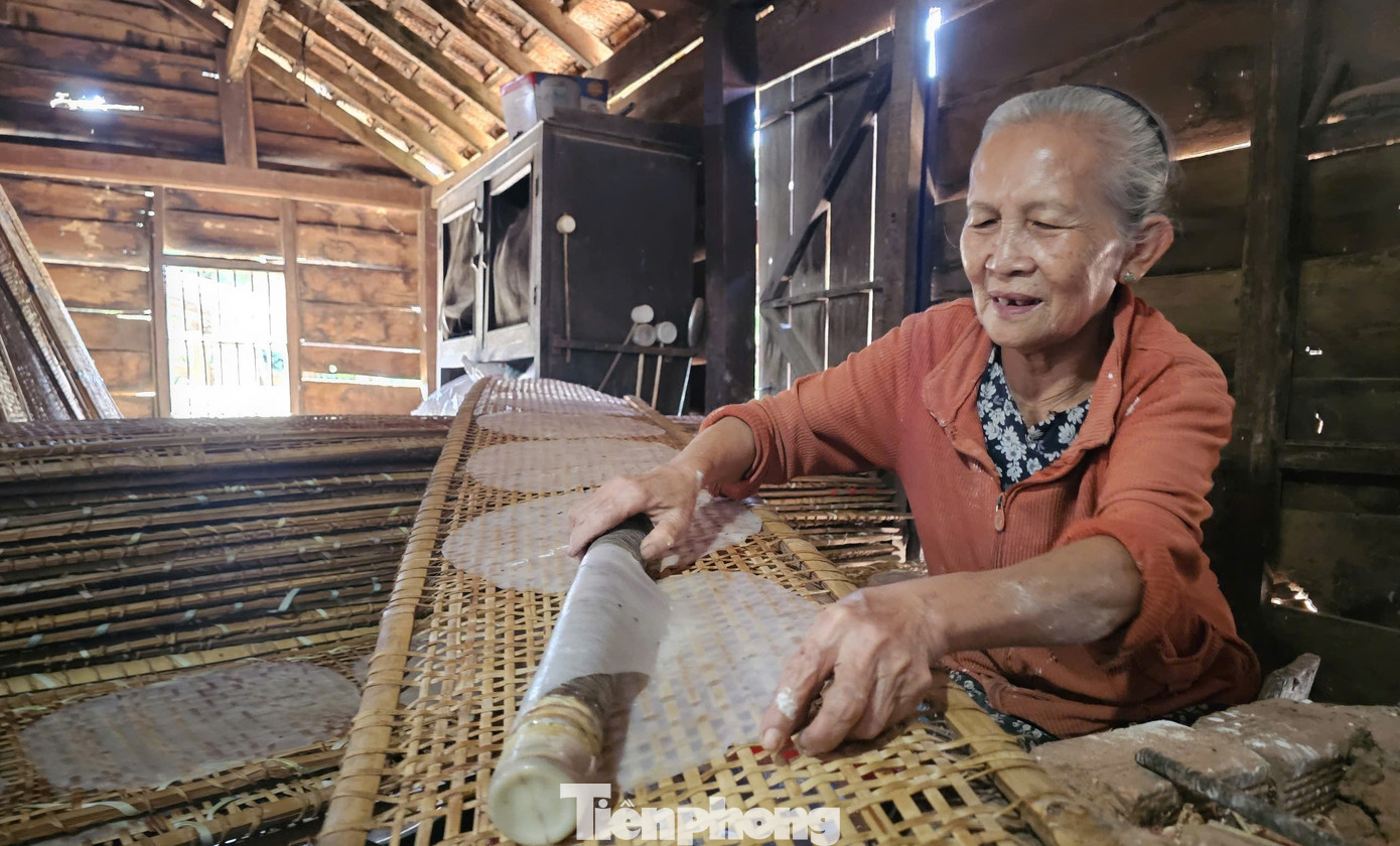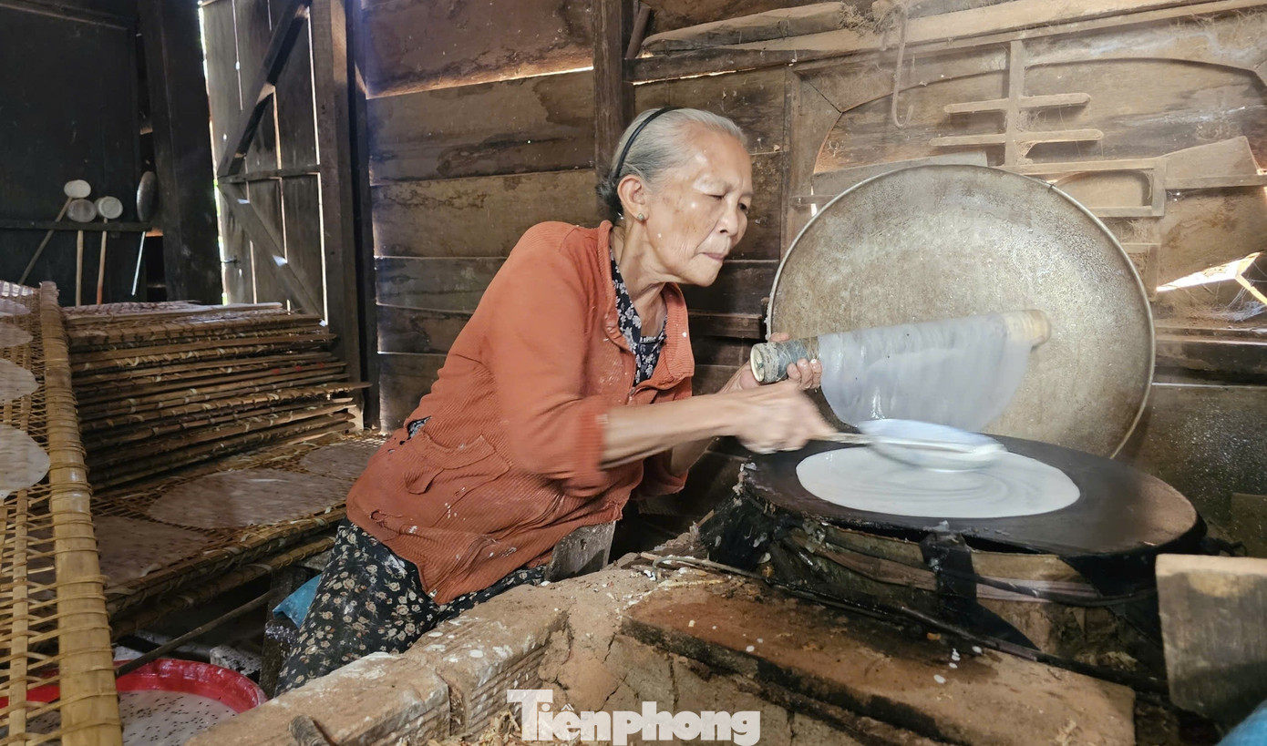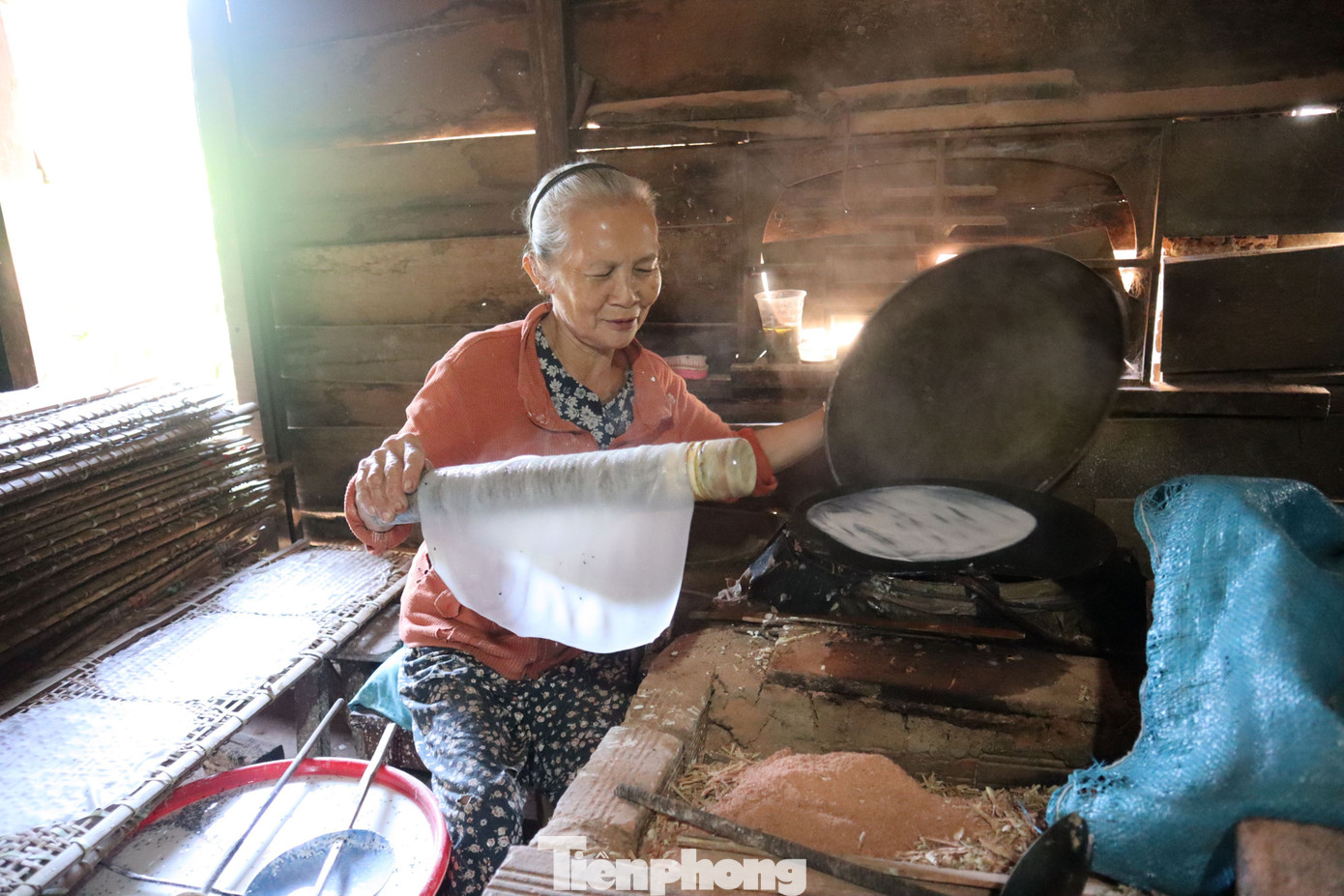 Bà Hà Thị Yến (73 tuổi, ở thôn 5, xã Ea Nuôl) nhóm lửa từ 2h sáng, tráng bánh đến chiều muộn. “Dịp này bánh tráng bán rất chạy, không làm thì không kịp giao cho các mối”, bà Yến nói.