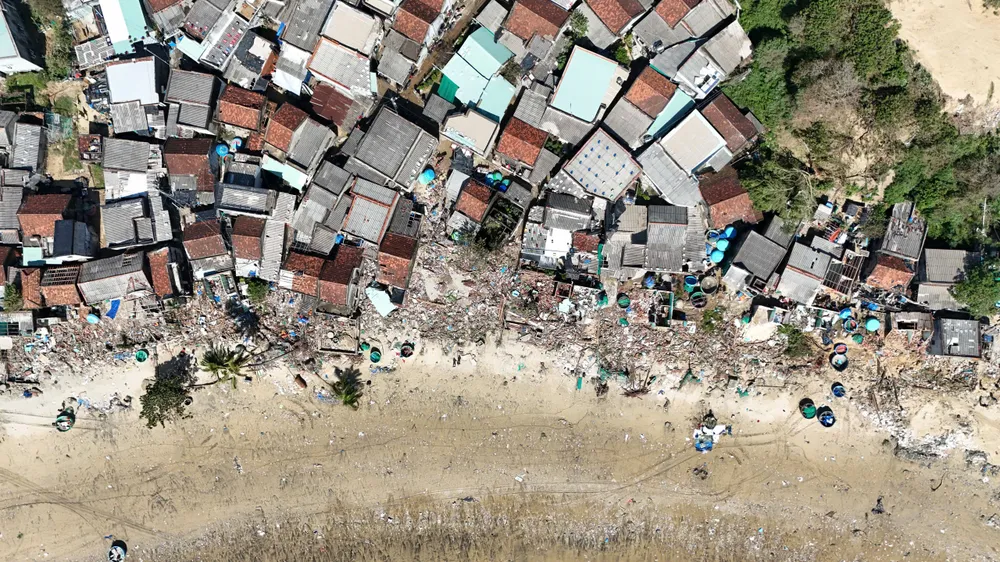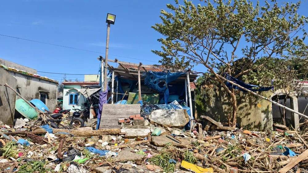 Cả làng chài hàng chục căn nhà hư hại nghiêm trọng tạo nên khung cảnh gây bàng hoàng cho người dân nơi đây.
