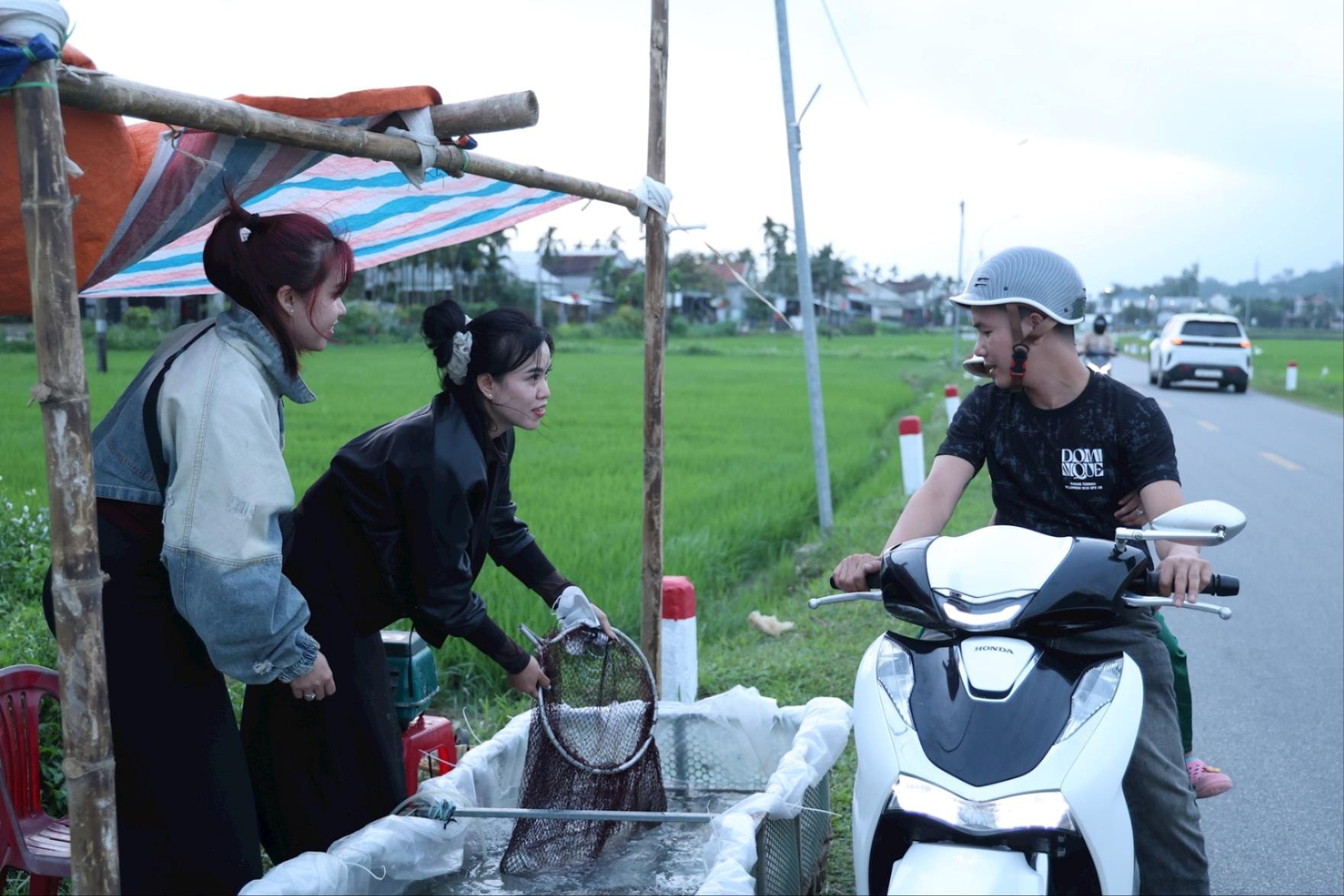 Khách ghé hỏi mua cá dọc đường. Ảnh: ST