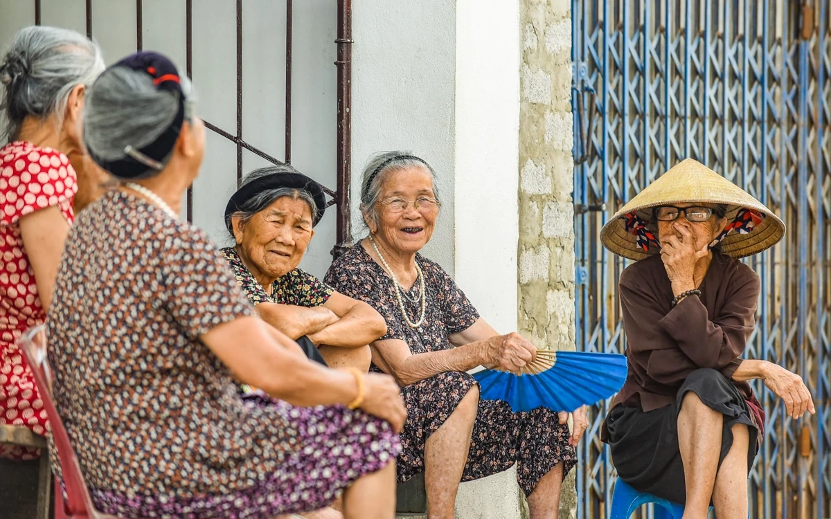 Ở góc hiên nhà, các cụ già ngồi tựa lưng bên chiếc chõng tre, chậm rãi phe phẩy quạt, chuyện trò dăm ba câu chuyện làng, ánh mắt hiền hòa dõi theo nhịp sống bình yên trôi qua từng ngày.