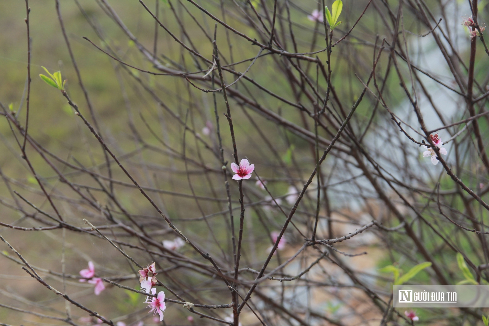 Chị Oanh chăm sóc những cây đào còn sót lại để hoa nở đúng dịp Tết.