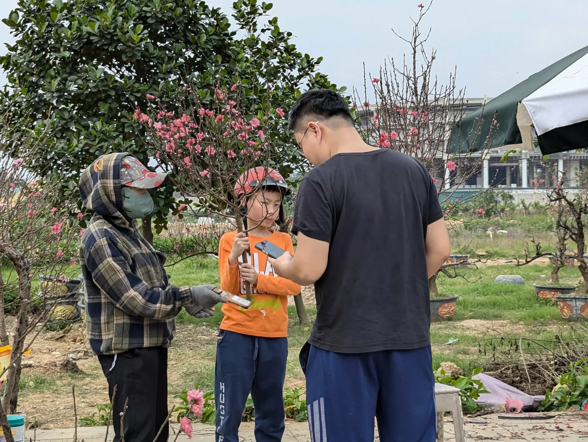 Một vài nhóm khách lẻ ghé thăm mua đào và tranh thủ thưởng ngoạn không khí ngày cuối năm.