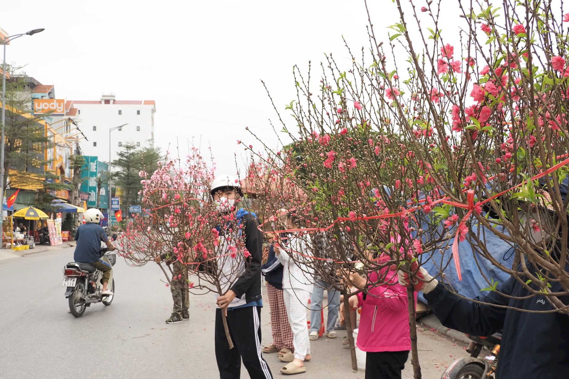 Sắc đào ngập tràn các con phố tại làng đào Ngọc Đà
