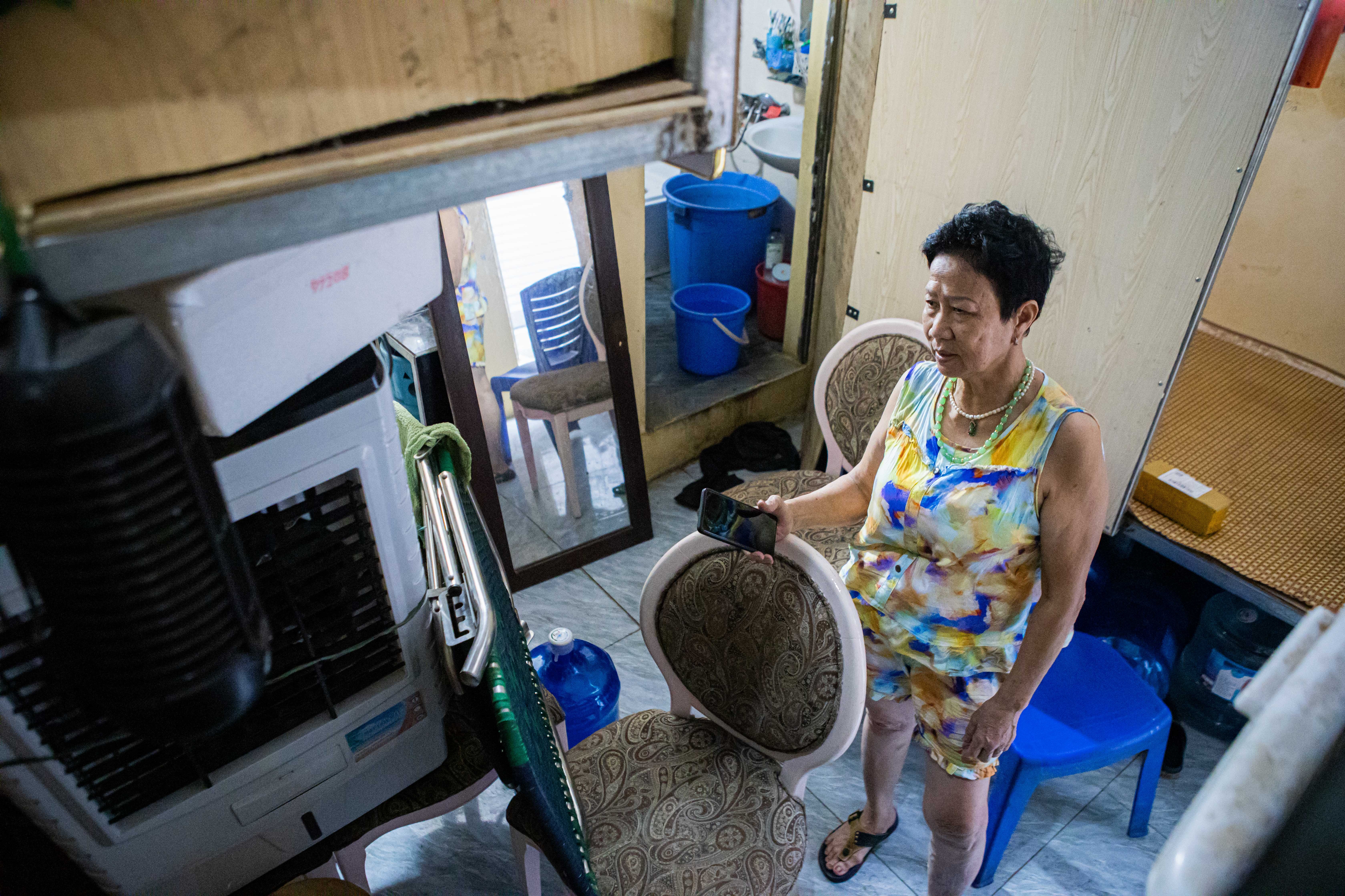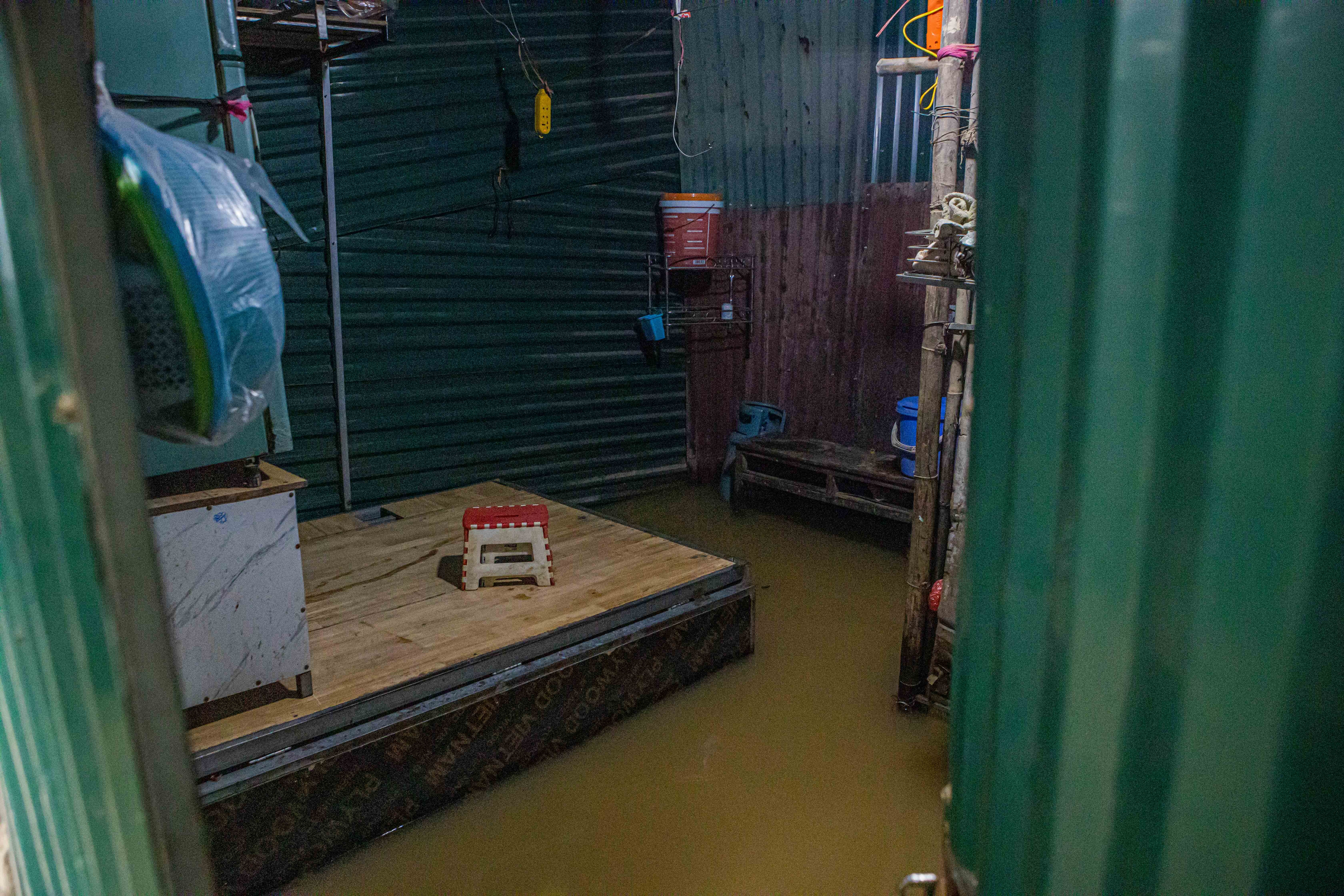 Nhà bà Nguyễn Thị Liên (70 tuổi) là một trong những căn trọ không bị ảnh hưởng khi mực nước lũ dâng cao tại khu xóm trọ tạm phía sau chợ Long Biên. “Nhà còn chỗ trống, lại thương bà con cùng xóm nên tôi cho mọi người để nhờ tài sản chờ ngày nước rút” bà Liên chia sẻ. Bà còn cung cấp chỗ ngủ miễn phí cho người dân đến khi nước rút.