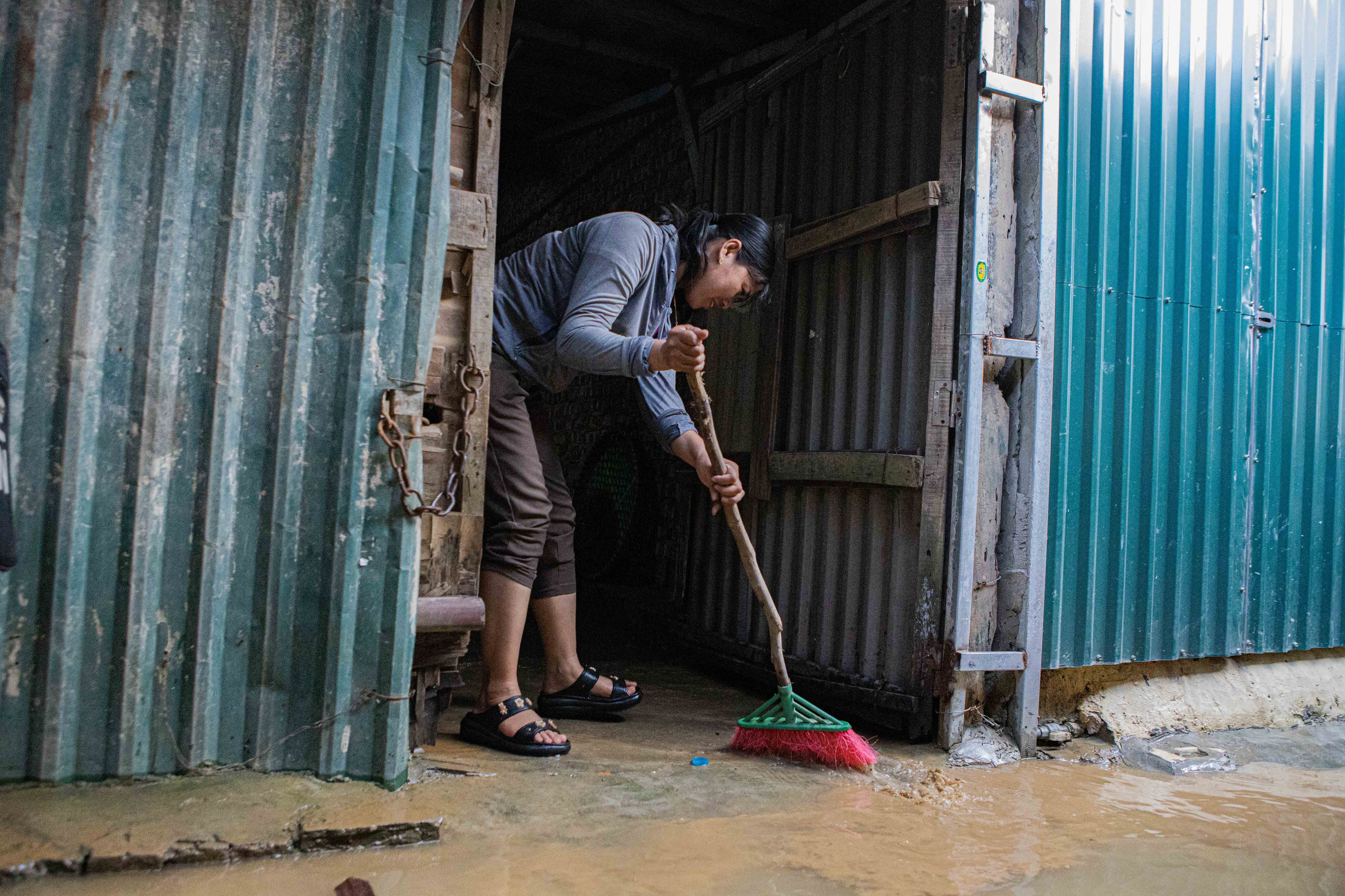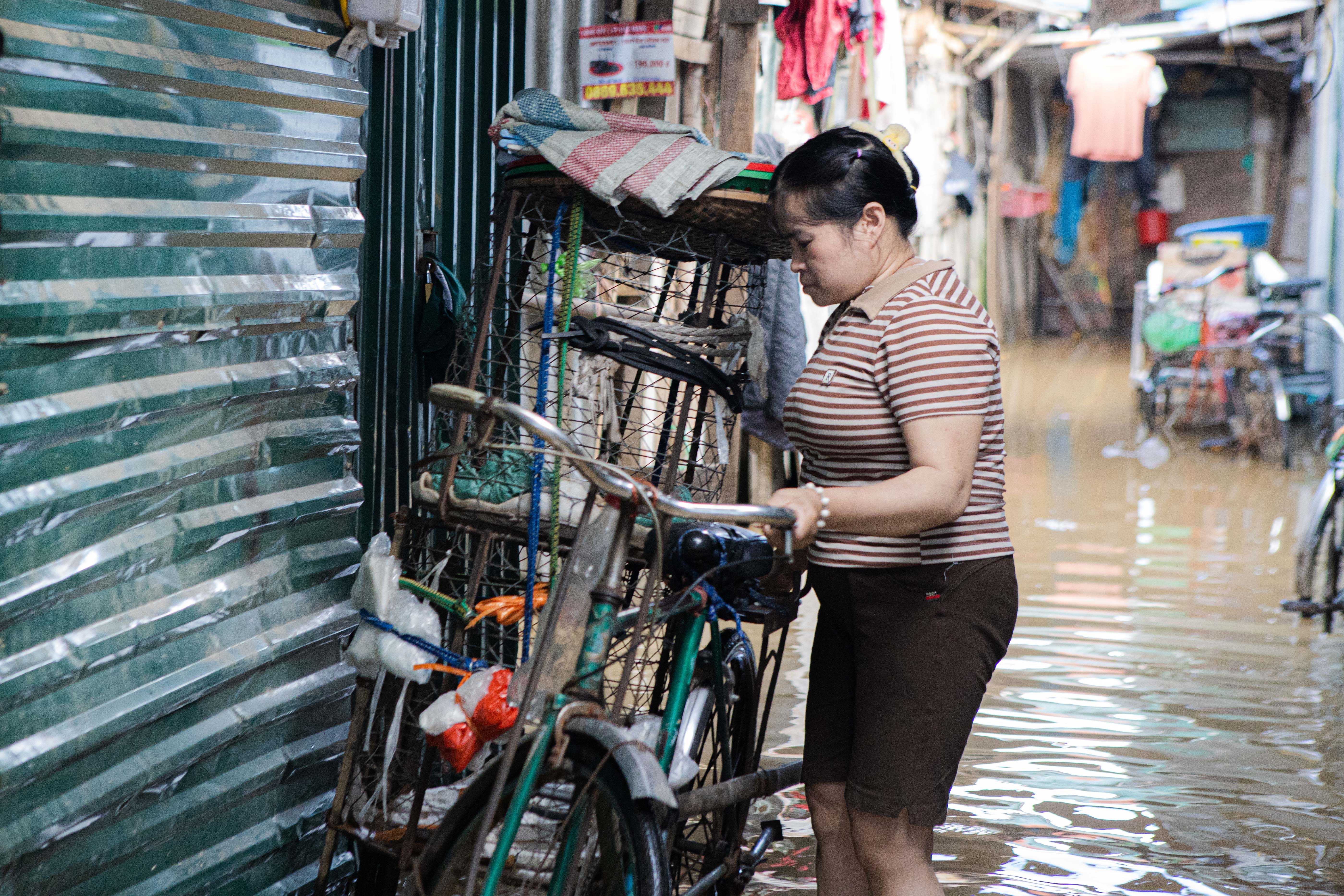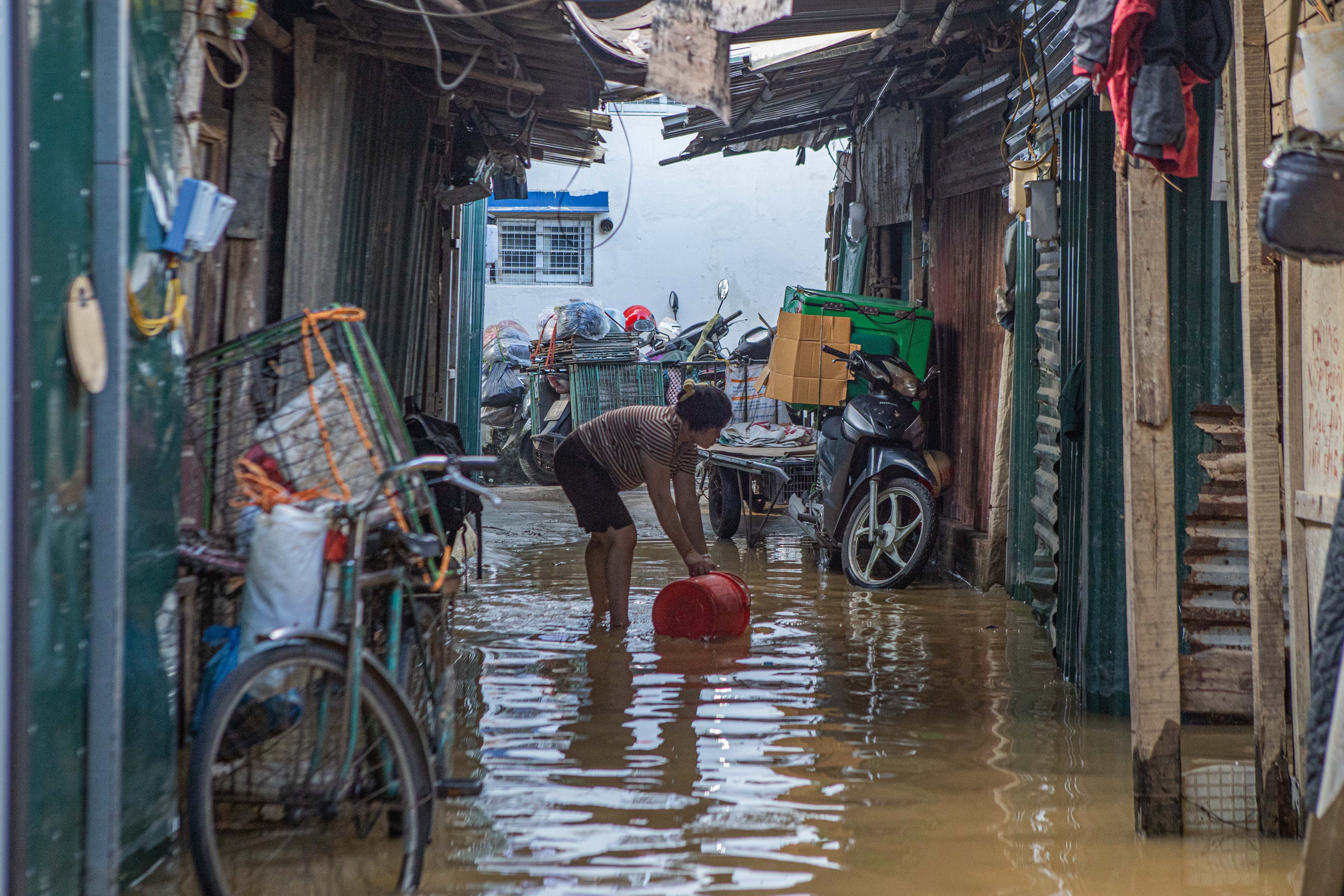 “Tôi sống ở đây hơn 5 năm, đi làm thuê bên ngoài vất vả mới đủ tiền thuê trọ. Năm nào mưa lớn, nước cũng cao quá nửa đầu gối, chỉ mong nước rút, đường khô, tôi còn tiếp tục mưu sinh”, bà Nguyễn Thị Dung, hộ dân sinh sống tại khu xóm trọ tạm phía sau chợ Long Biên, chia sẻ.