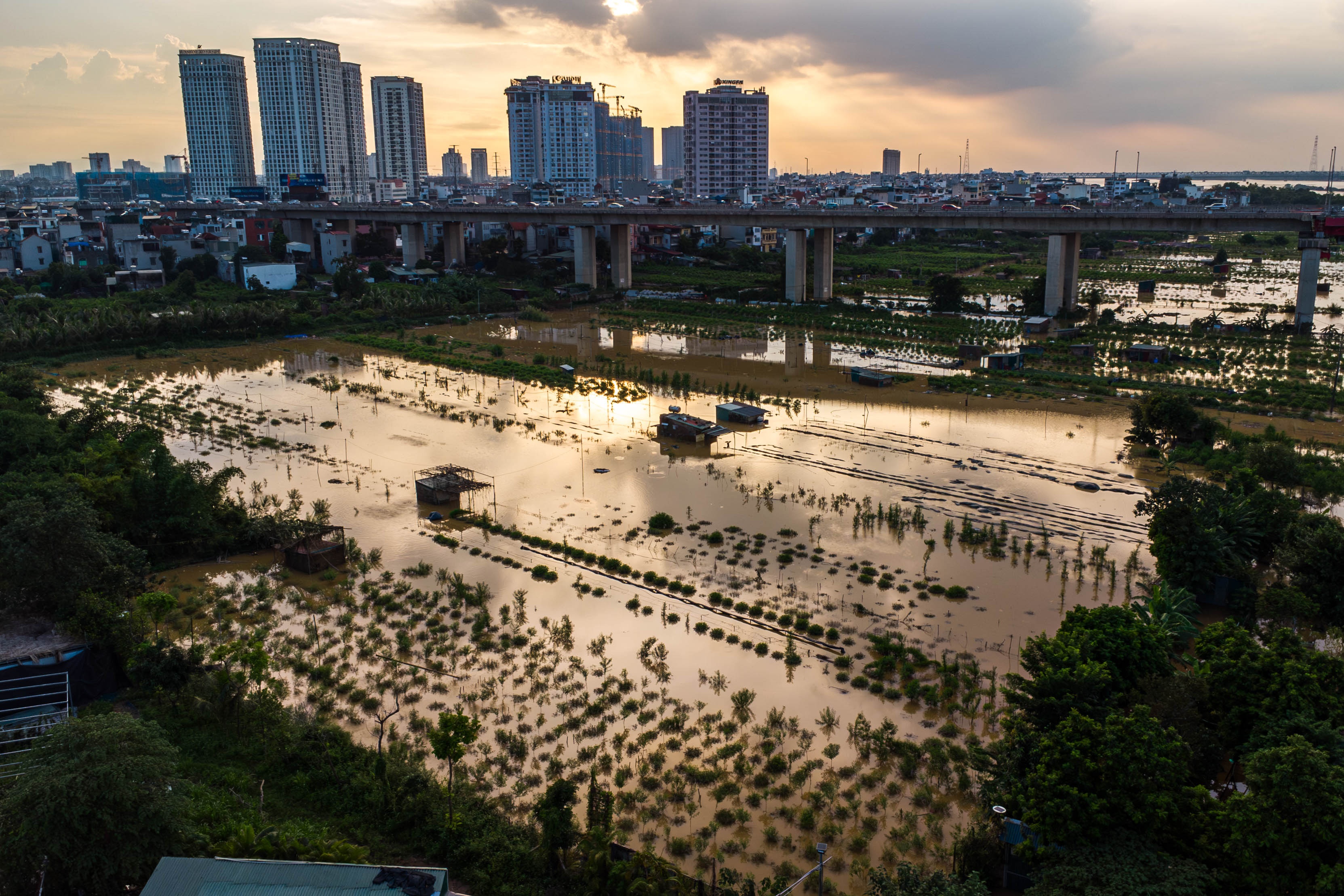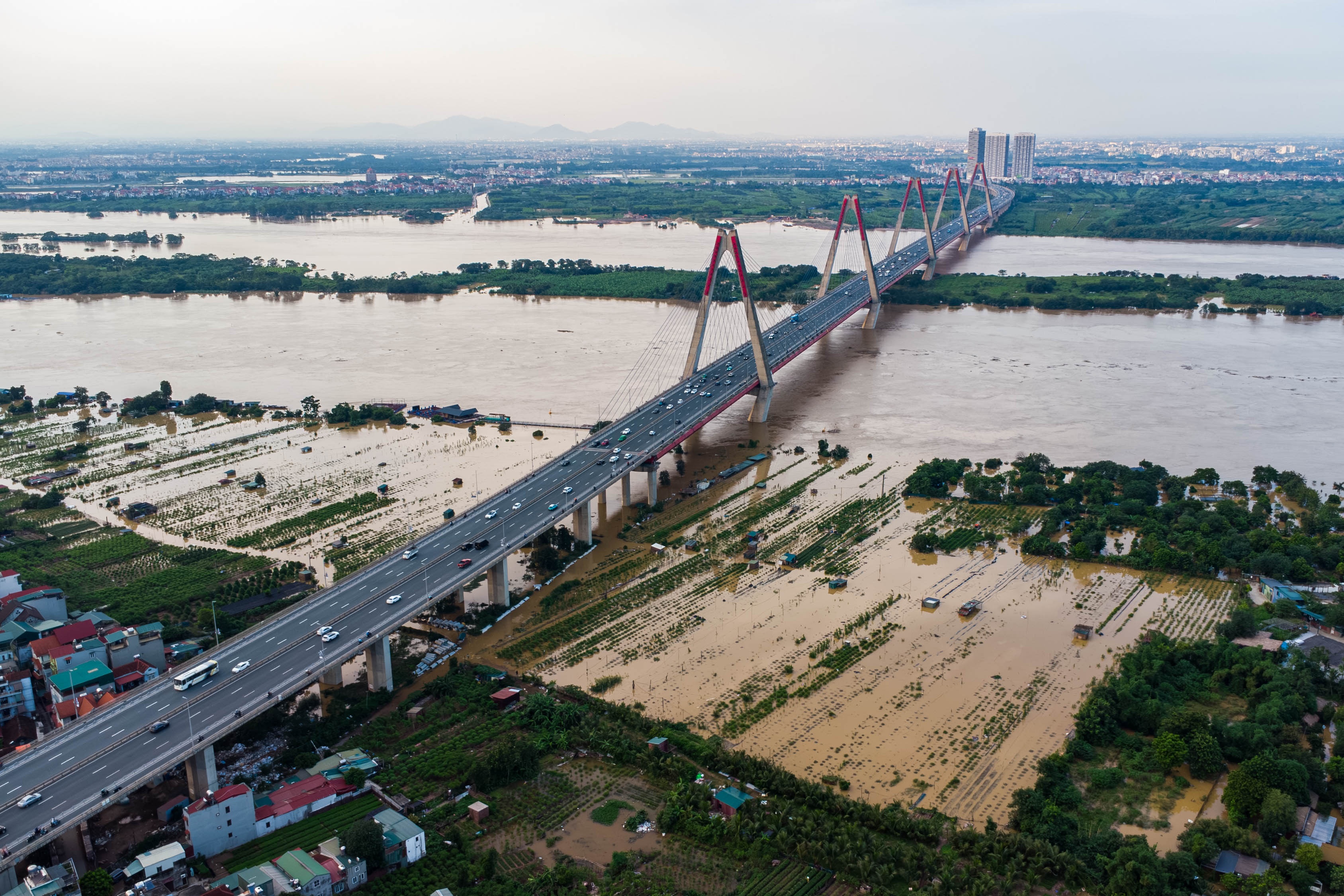 Ghi nhận trong ngày 1 và 2/10, Trung tâm Dự báo Khí tượng Thủy văn Quốc gia phát đi cảnh báo lũ hạ lưu sông Hồng tại trạm Hà Nội tiếp tục lên và dao động ở mức báo động 1. Mực nước sông Hồng lên rất nhanh kèm mưa lớn những ngày vừa qua, khiến các khu vực bãi bồi, khu dân cư ven sông Hồng đoạn qua địa phận Hà Nội chìm trong biển nước.