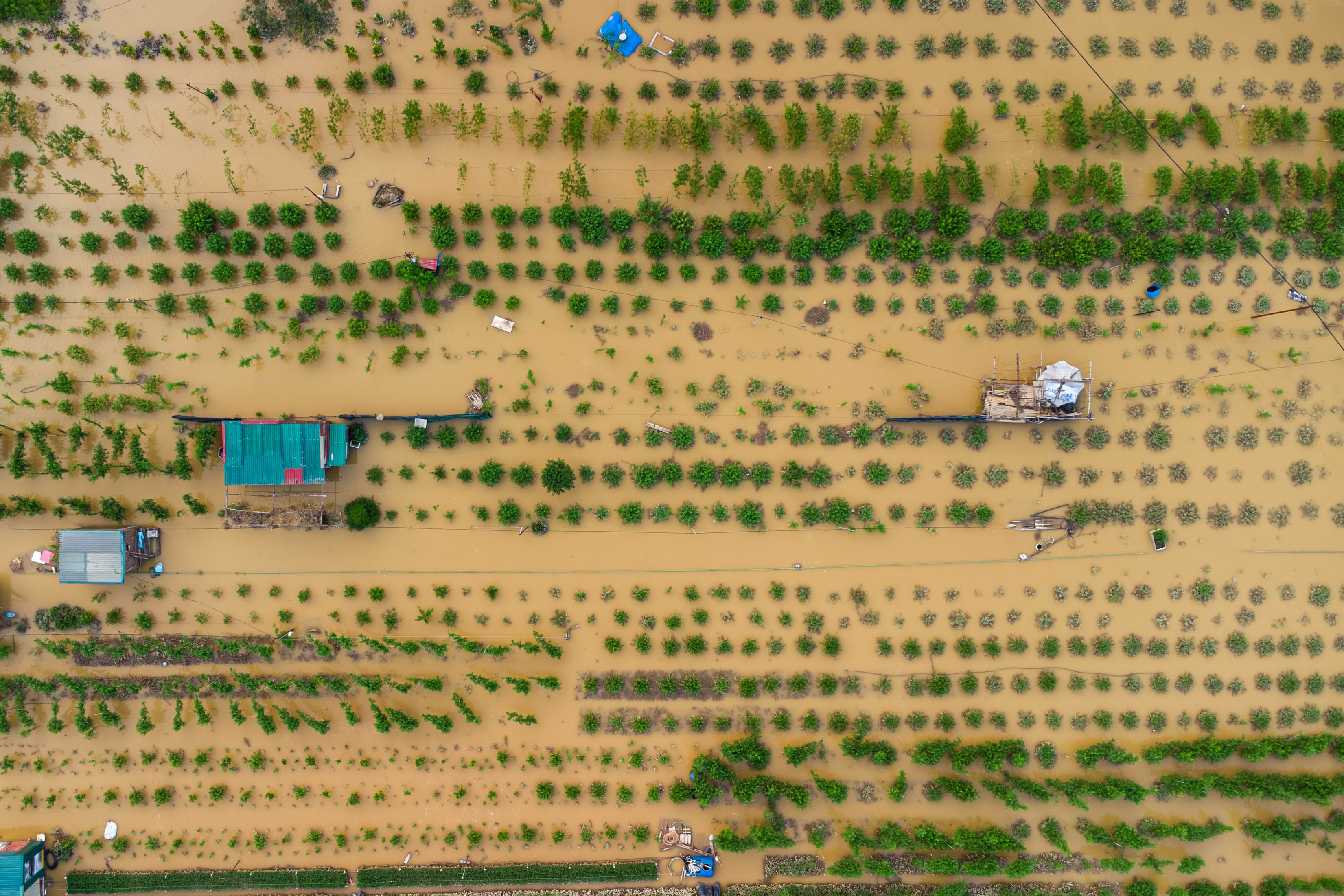 Các làng đào Nhật Tân, Phú Thượng chìm trong màu nước đục ngầu chiều 2/10.