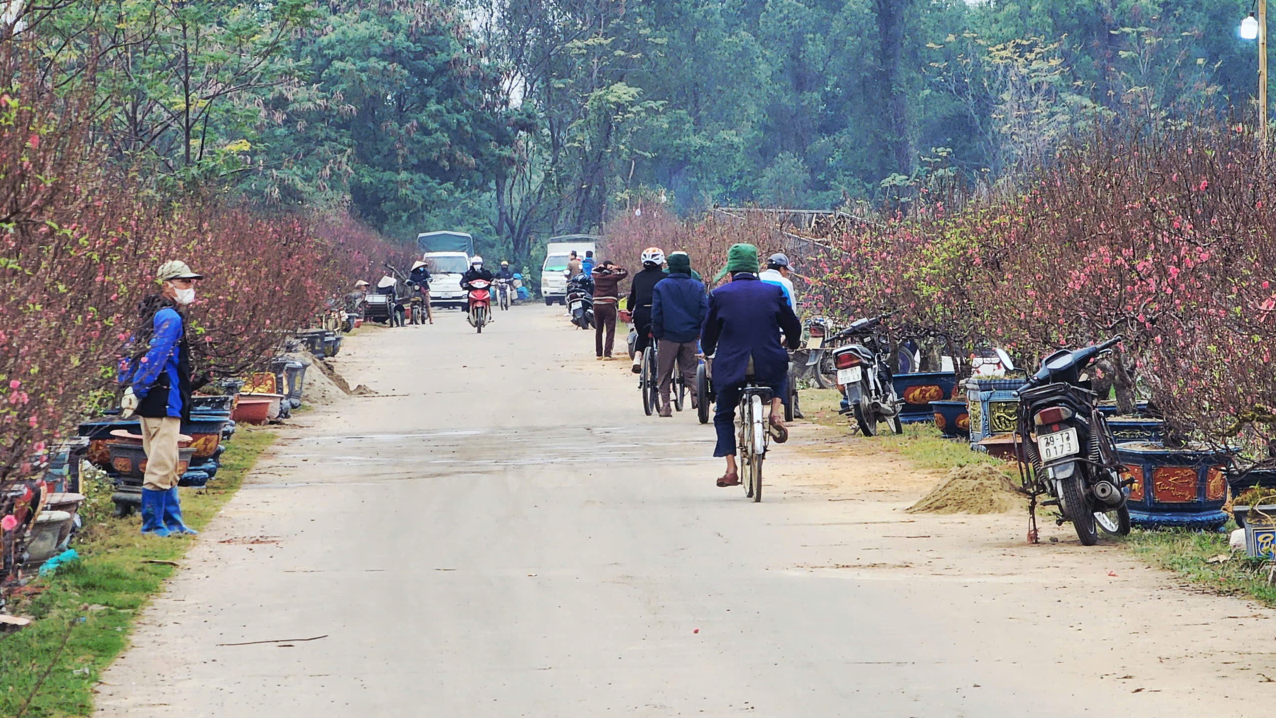 Những ngày đầu tháng chạp (thời điểm cách tết Nguyên đán Bính Ngọ 2026 hơn 20 ngày), trên đê sông Cầu cạnh cánh đồng thôn Cẩm Hoàng, xã Xuân Cẩm, tỉnh Bắc Ninh từ sáng sớm đã tấp nập người và phương tiện đến mua bán đào cảnh.