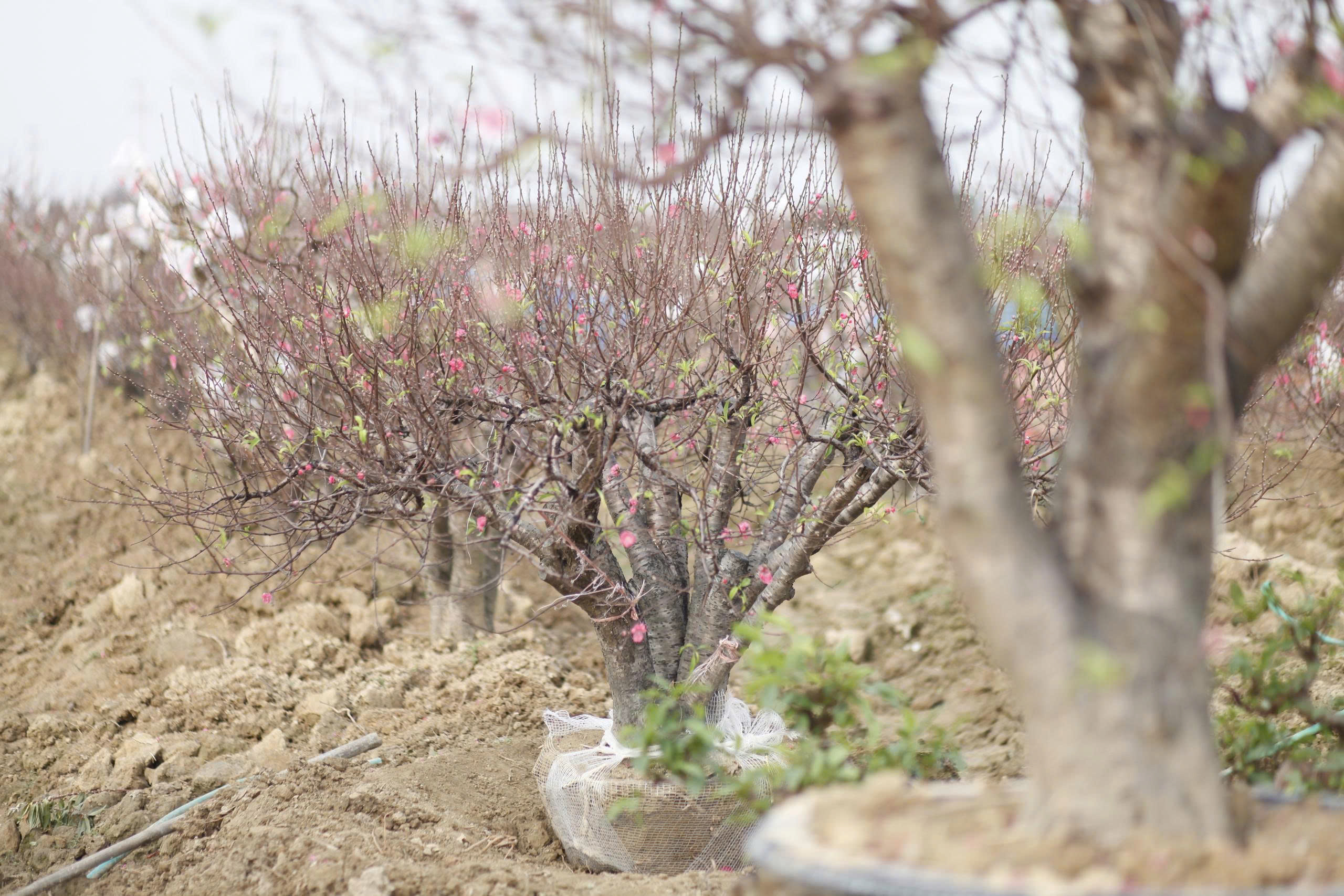 Ông Ngân cho hay, gia đình ông năm nay trồng hơn 5 sào với hơn 400 gốc, thương lái đặt mua từ cuối tháng 11 âm lịch. Đầu tháng chạp là thời điểm họ đến đánh gốc đào để đi bán.