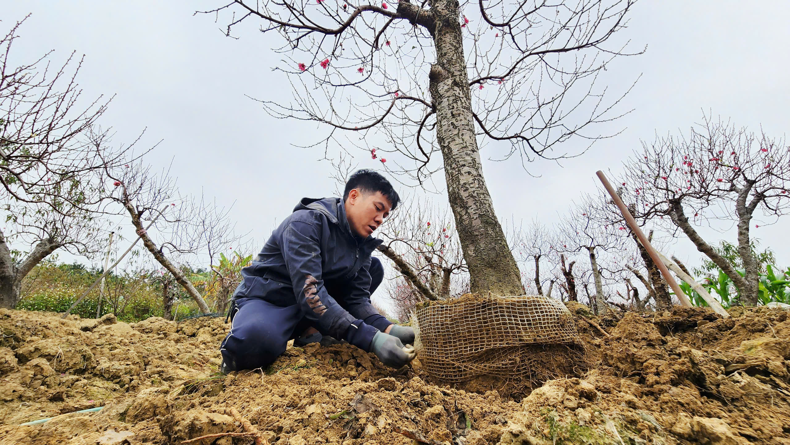 “Tôi đi một số làng trồng đào ở nơi khác thì thấy nhiều vườn với hàng trăm gốc đã bung nụ to, có nguy cơ nở trước tết là rất cao. Những đào ở Cẩm Hoàng thì đa phần nụ mới bằng hạt đỗ đen, tầm 20 ngày nữa là vừa kịp nở để đón Tết”, anh Tình nói.