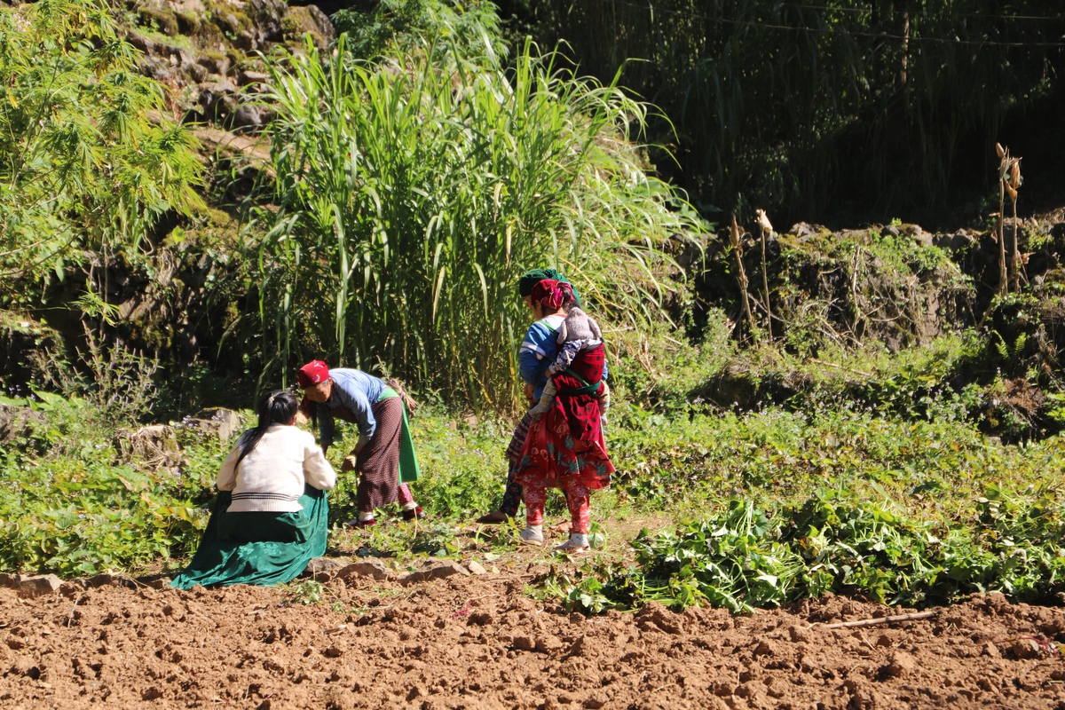 Phụ nữ làng Sảo Há tận dụng đất quanh nhà để trồng rau
