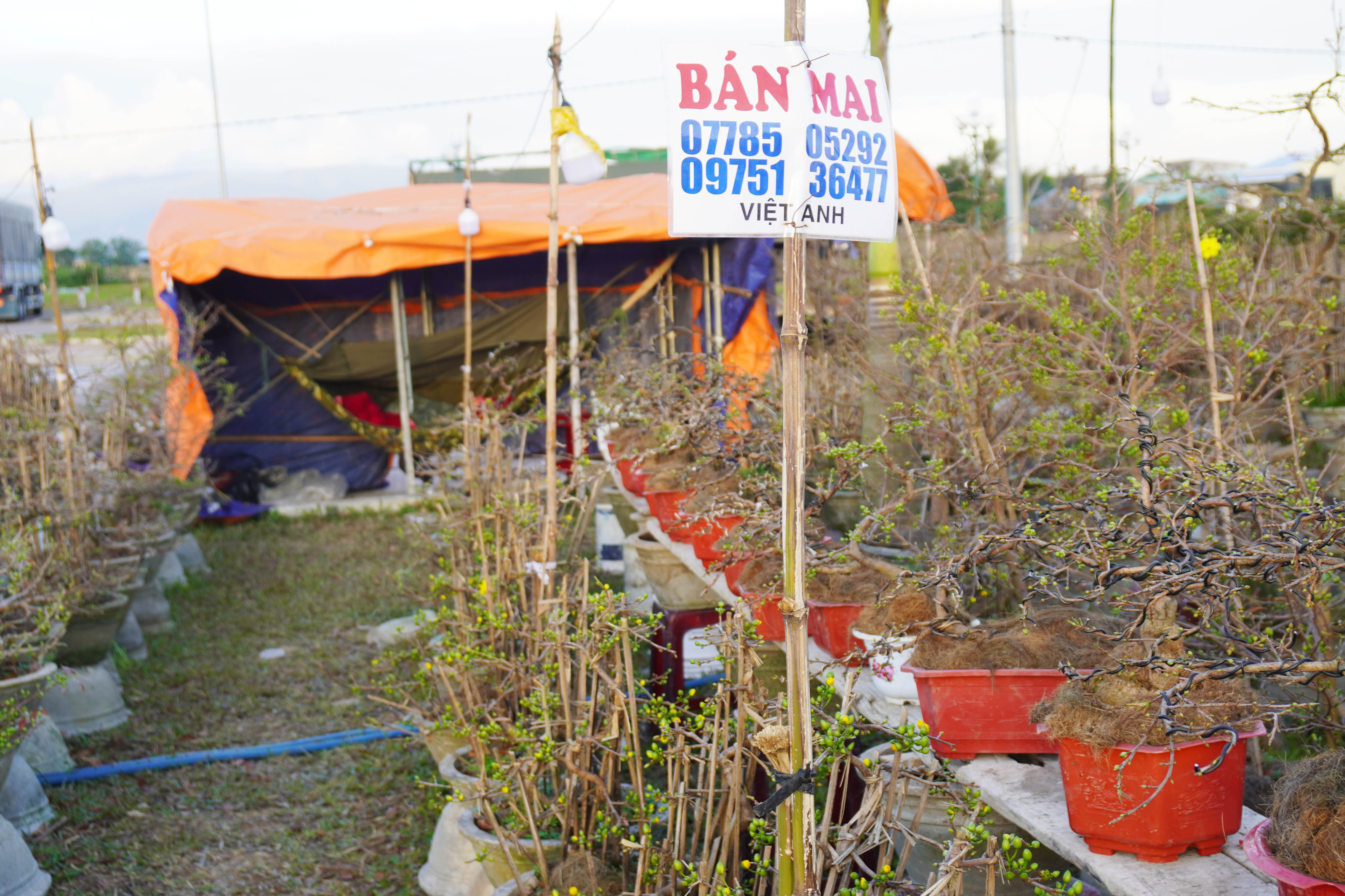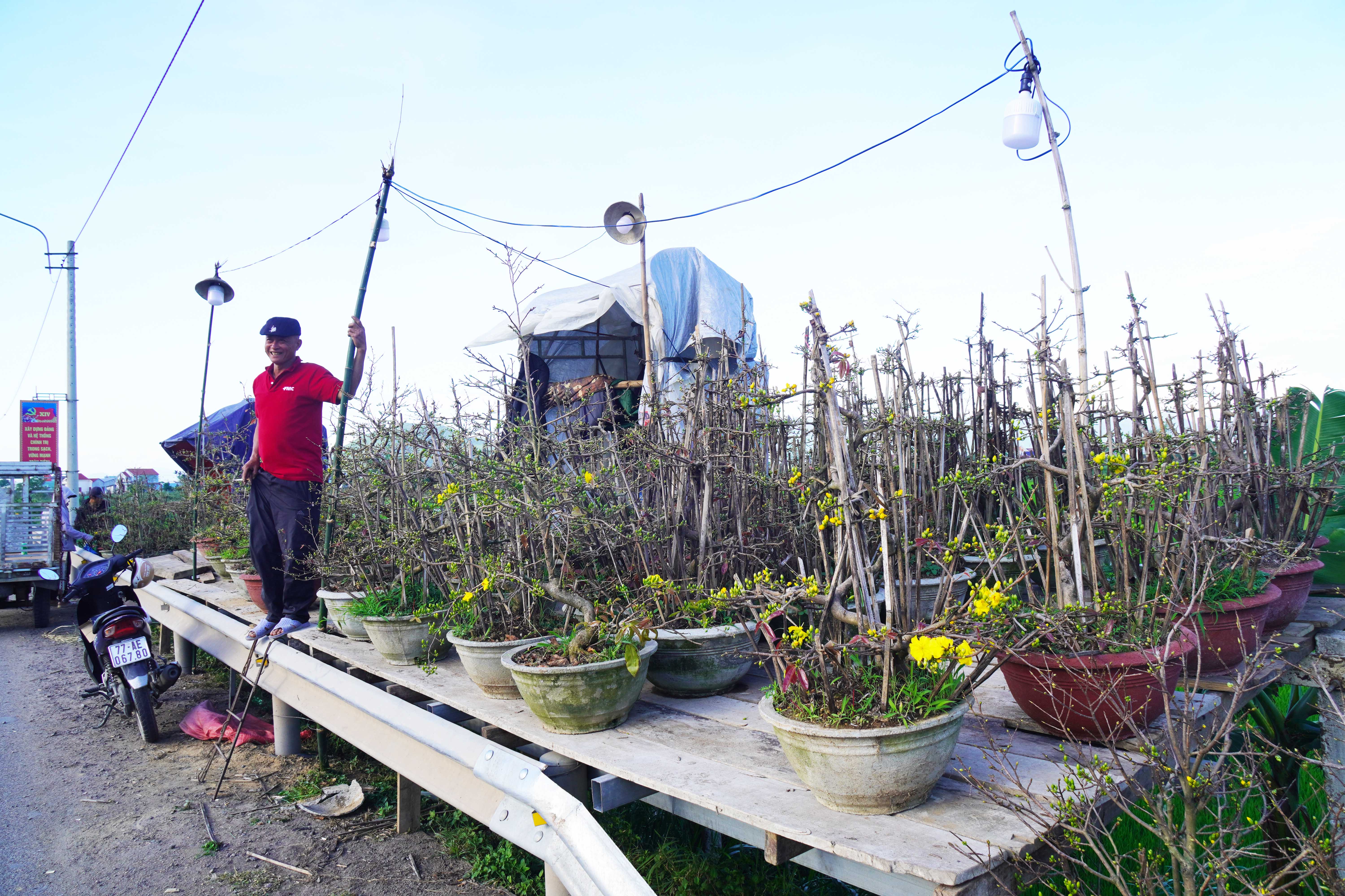 Tại thủ phủ hoa mai vàng lớn nhất miền Trung - vùng An Nhơn (Gia Lai), các chủ vựa mai kiểng đã tập trung dọc Quốc lộ 1A dựng lều trại, trưng bày hàng loạt sản phẩm mai vàng với nhiều dáng thế để chào bán cho thương lái, tài xế xe tải Bắc - Nam.