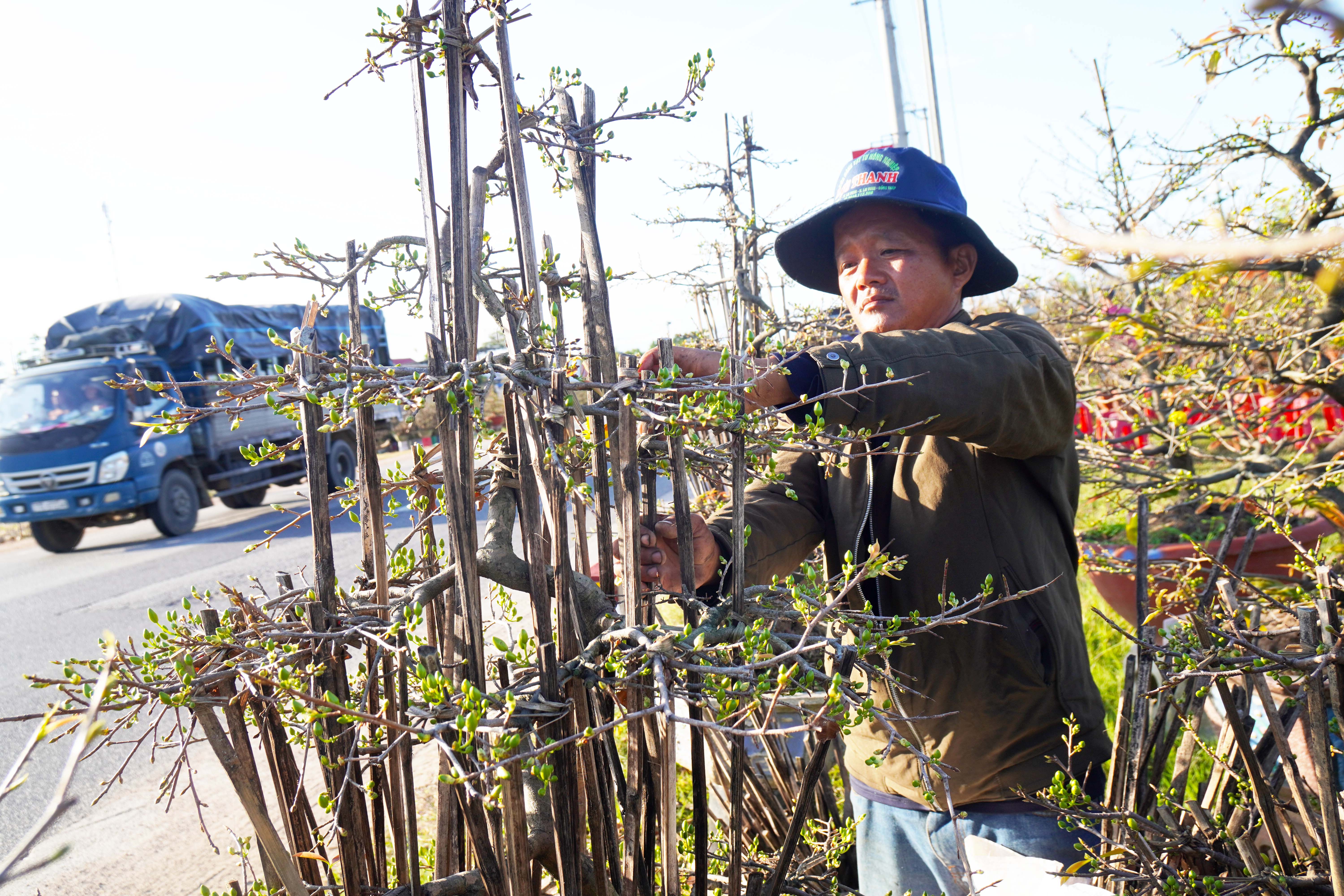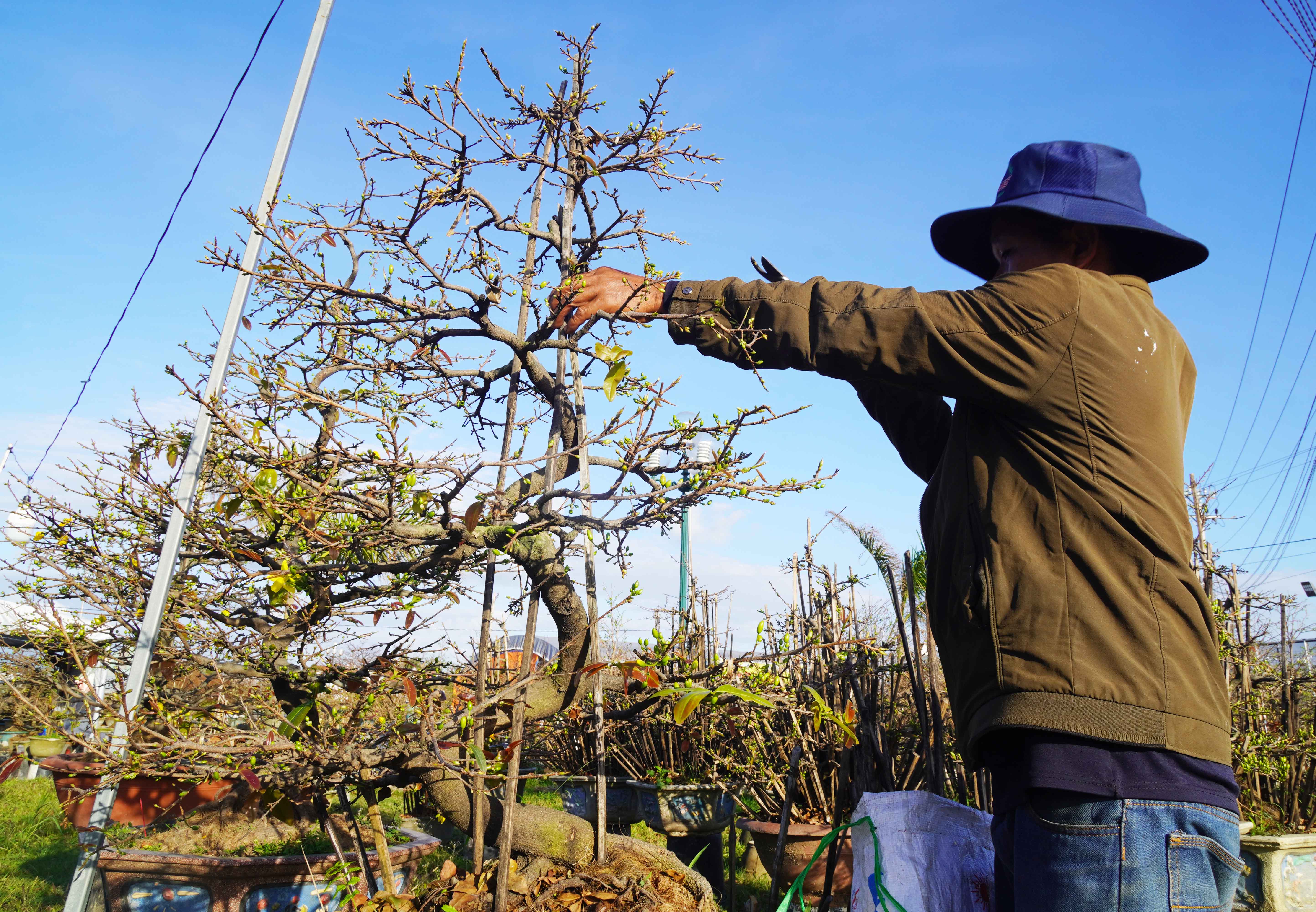 Năm nay chi phí vật tư, phân bón đắt đỏ nên các chủ vựa mai tết An Nhơn gặp nhiều khó khăn