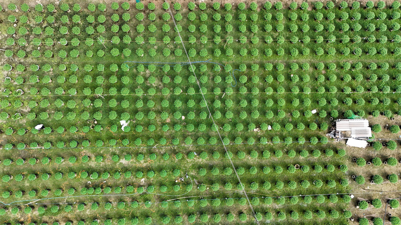 Ngoài định hình các lớp hoa mọc, việc tỉa bỏ và dặm thêm những cây cúc nhỏ ở phía dưới cũng được người nông dân cẩn thận sắp xếp.