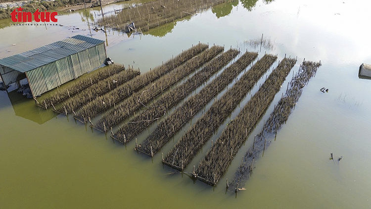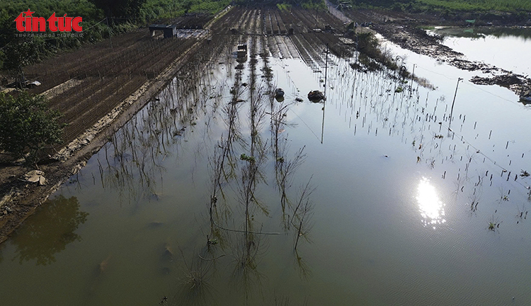 Làng hoa Tây Tựu nước lũ nhấn chìm hàng loạt ruộng hoa đang thời kỳ phát triển.