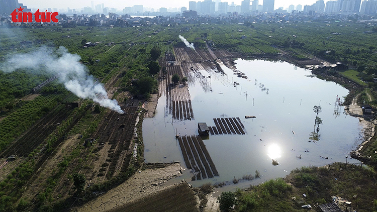 Tại bãi bồi ven sông Hồng, nơi vốn là vùng trồng đào, quất và cúc họa mi, nước lũ dâng cao khiến nhiều ruộng ngập sâu. Những luống cúc trồng từ tháng 5 âm lịch, đang thời kỳ chuẩn bị ra nụ, bị ngâm trong nước nhiều ngày, thân cây đen, rụng lá, chết hàng loạt. Một số hộ dân trồng xen cúc họa mi dưới gốc đào để giữ ẩm, cải tạo đất cũng chịu thiệt hại nặng.