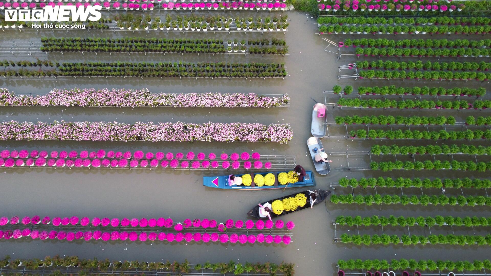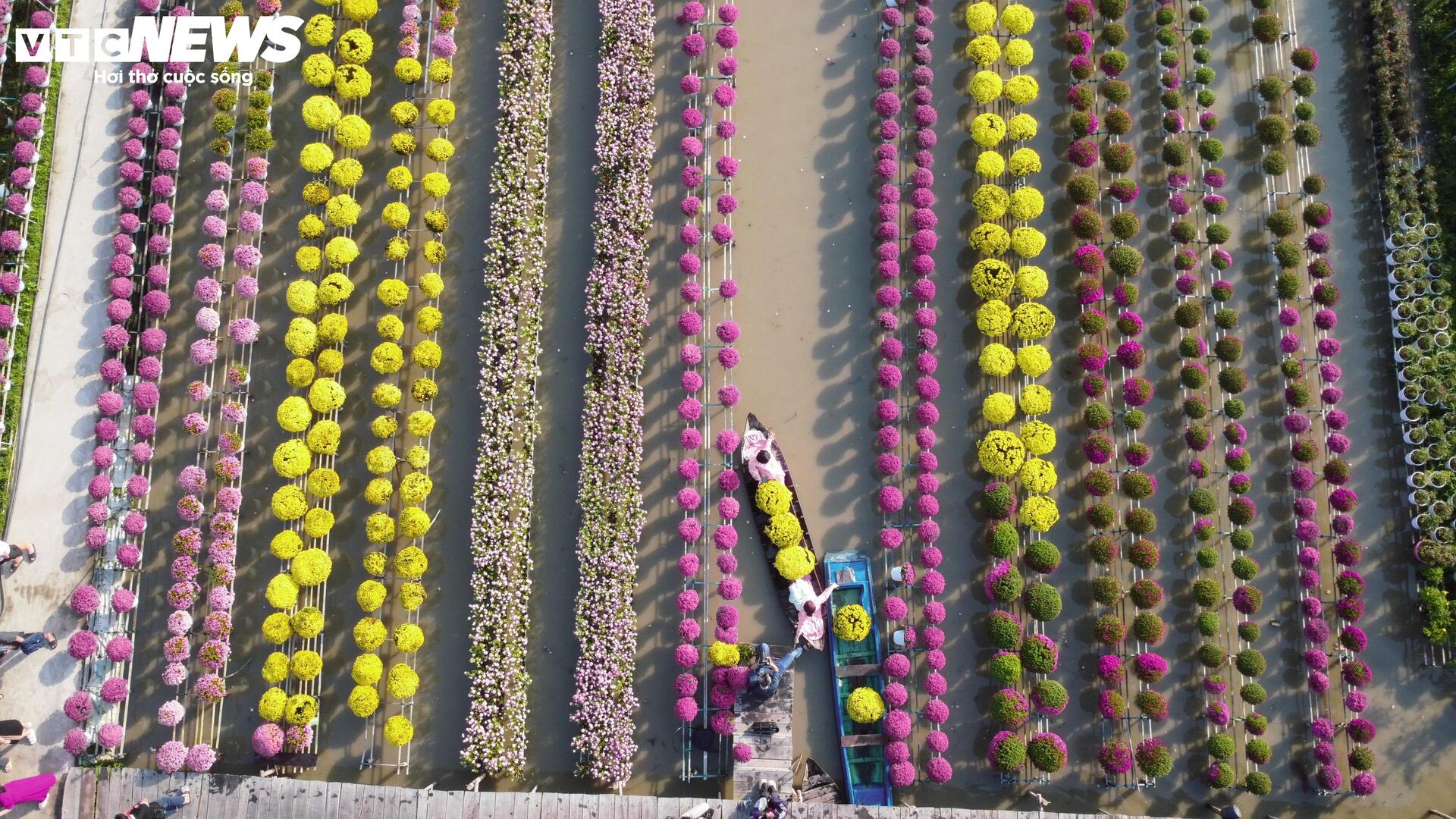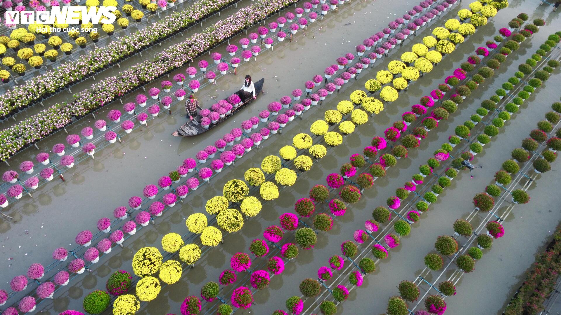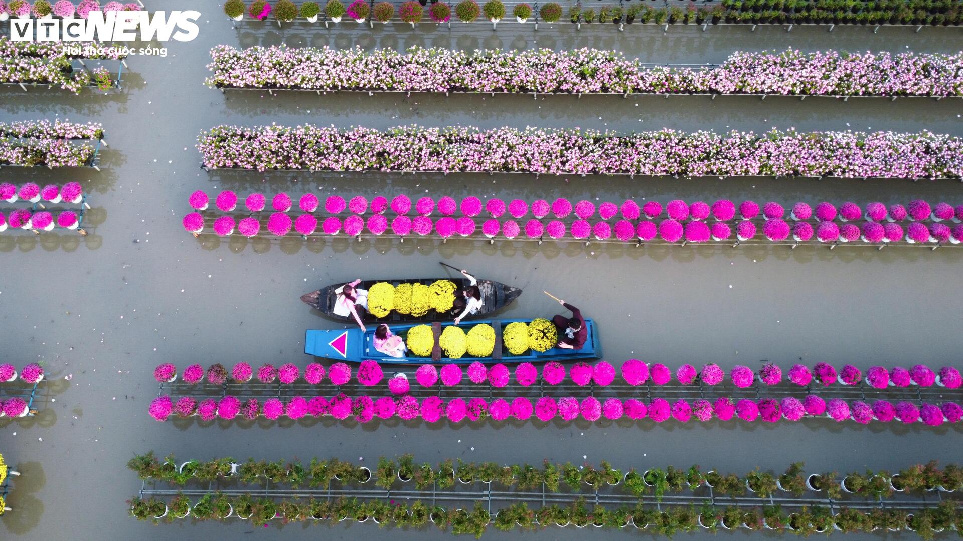 Thời điểm này, hàng trăm giống hoa đồng loạt khoe sắc, tạo nên không gian rực rỡ, sôi động giữa vùng ven sông Tiền.