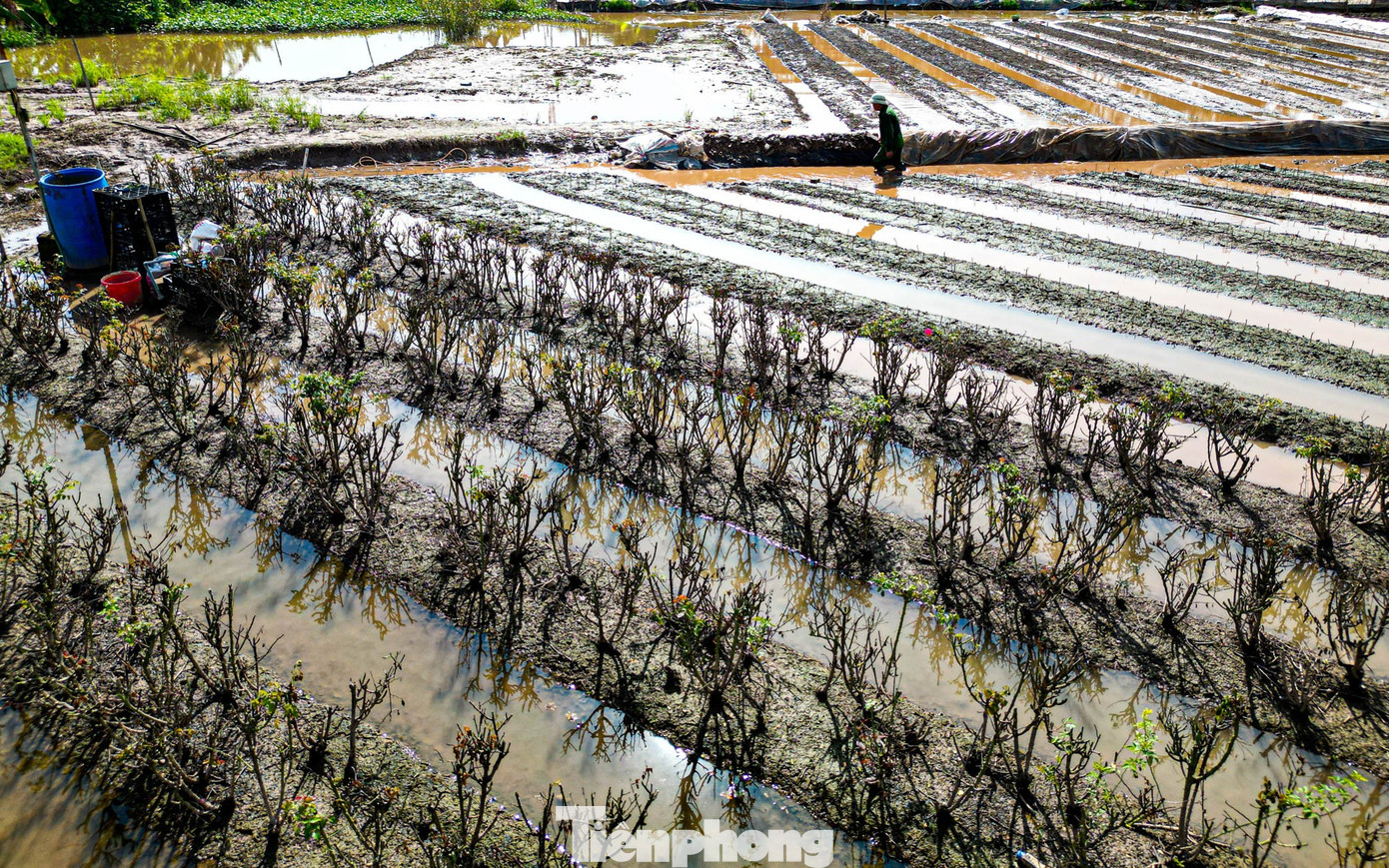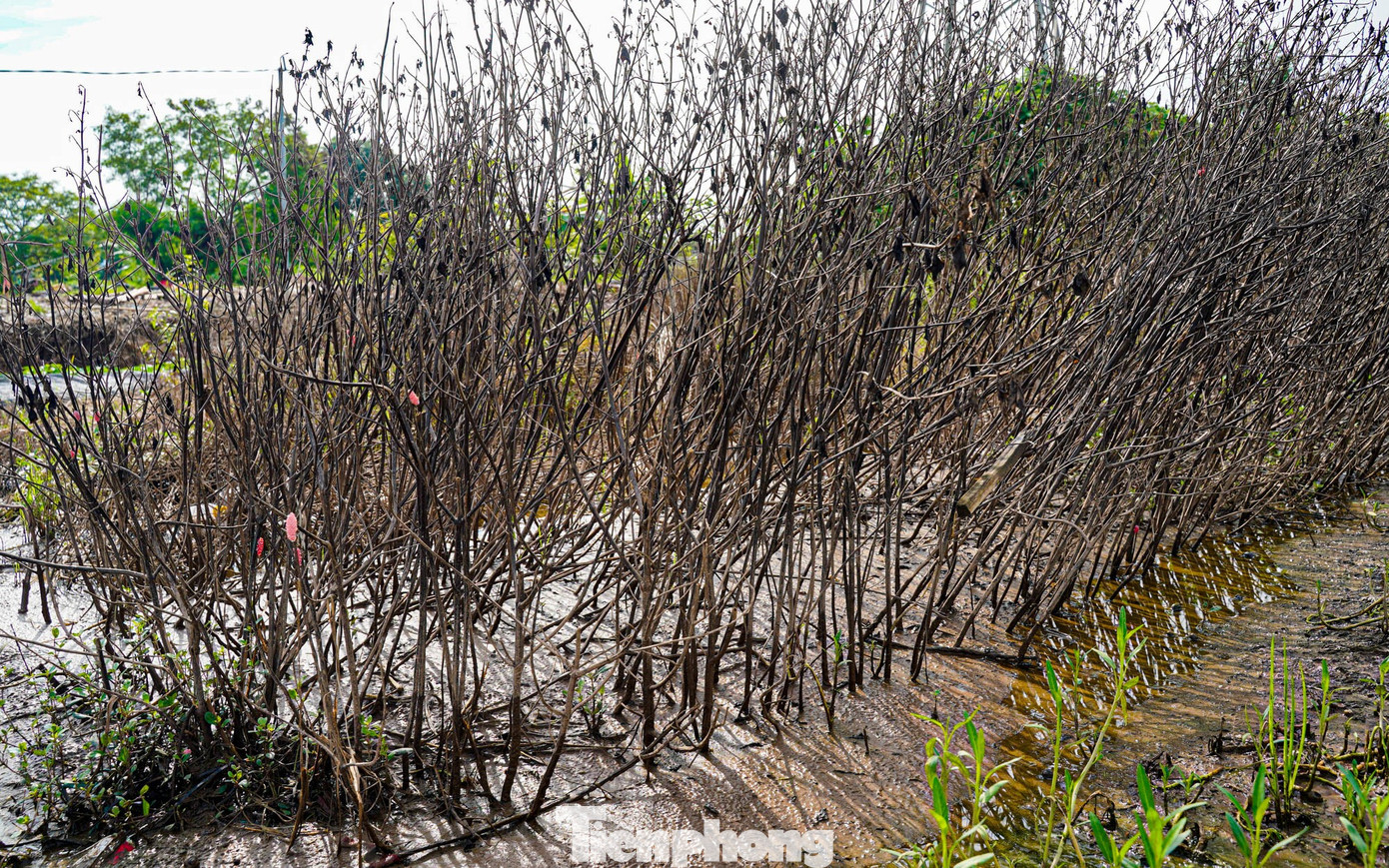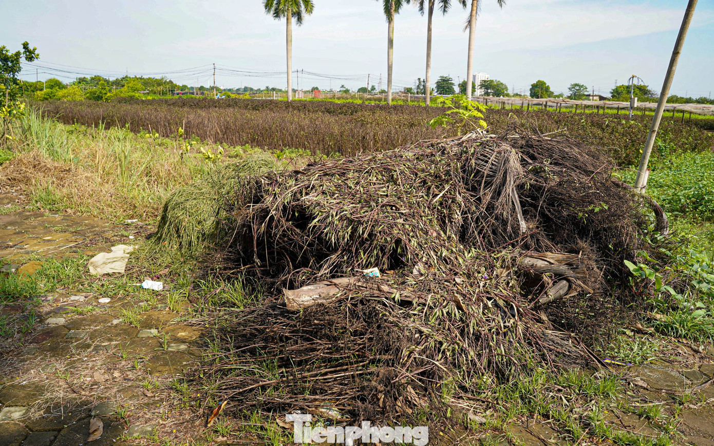 Nước rút, để lại cánh đồng đầy bùn đất và hàng chục nghìn gốc hoa loa kèn, hoa cúc...chết khô, thối rễ.