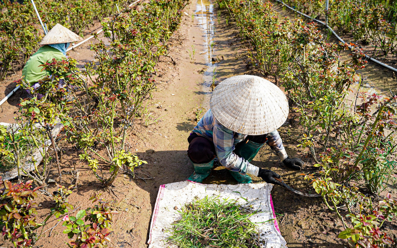 Giá hoa hồng hiện tại ở làng hoa Tây Tựu dao động từ 4.000 đến 5.000 đồng/bông. Tuy nhiên, do ảnh hưởng của bão và ngập úng, nhiều vườn hoa bị hư hại nặng, nguồn cung giảm mạnh, không đủ đáp ứng nhu cầu thị trường.