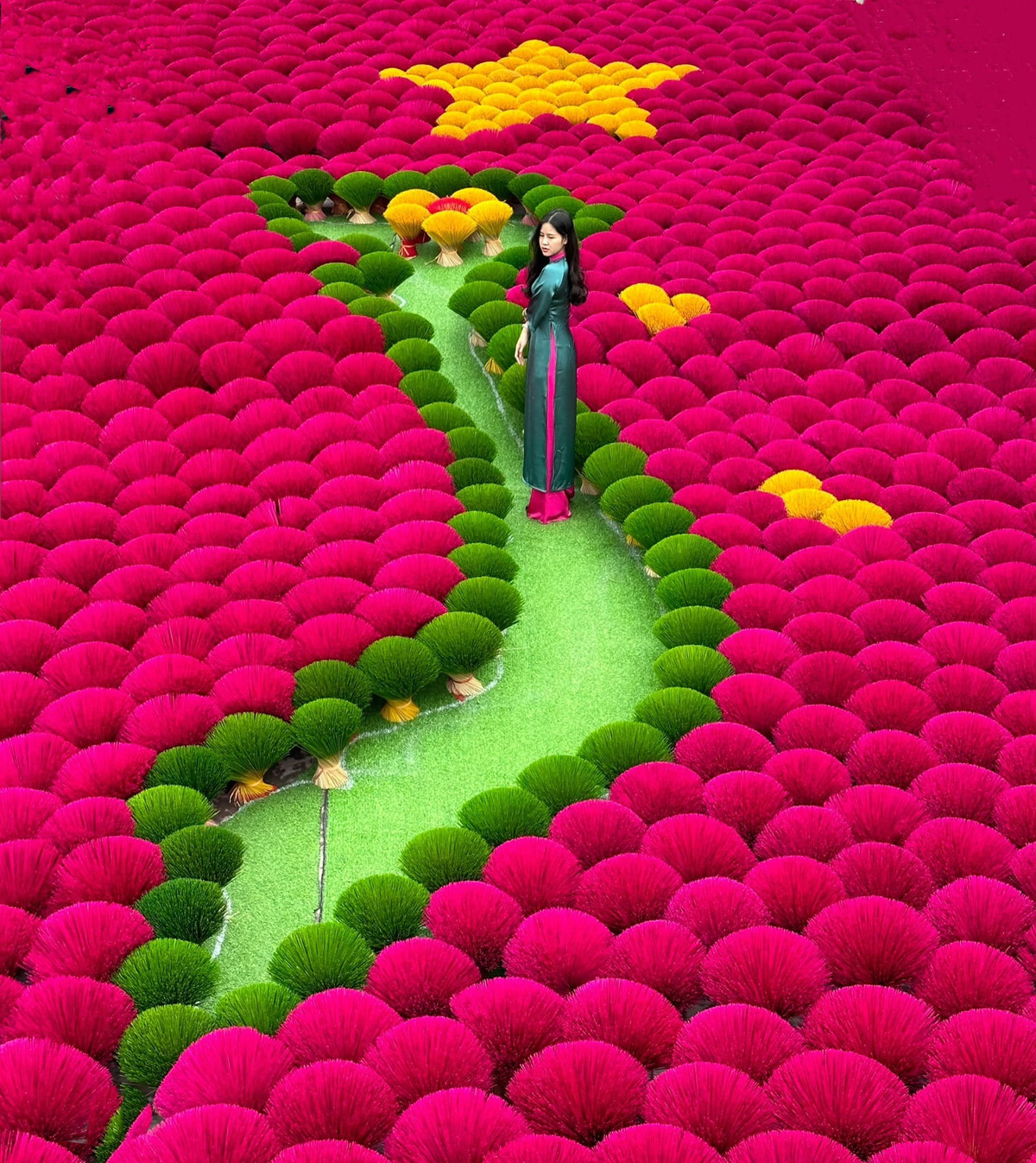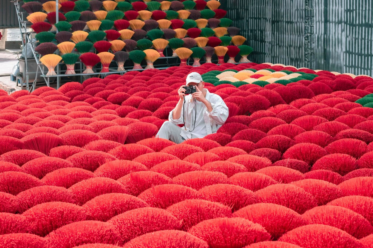 Ngoài chụp hình, du khách có thể quan sát quy trình làm hương thủ công và cảm nhận mùi thơm dịu nhẹ của trầm, quế, hồi lan tỏa khắp không gian. Ảnh SGTT