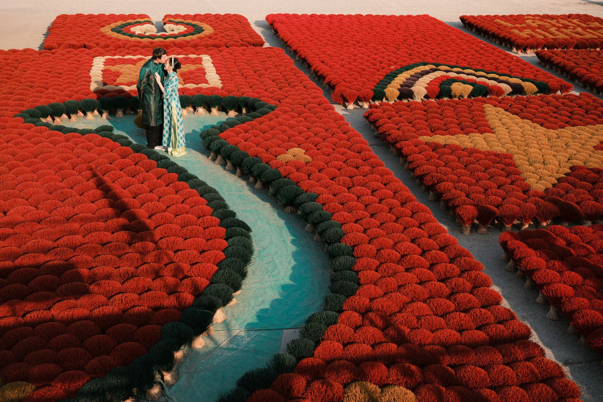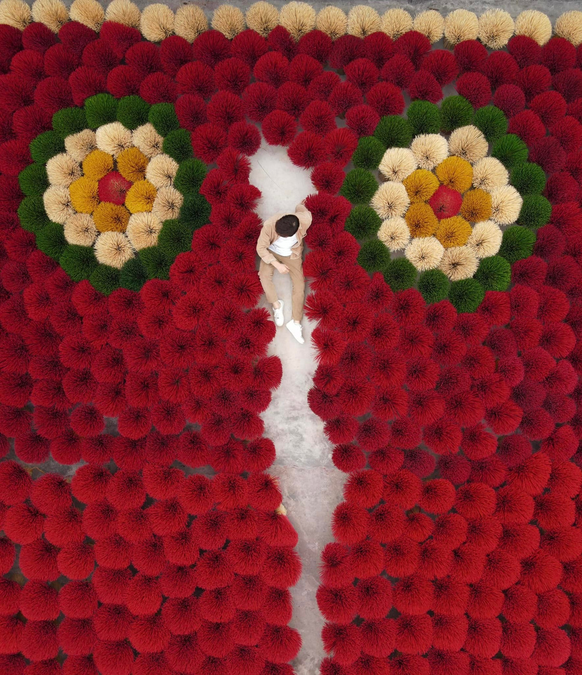 Hai gam màu đỏ – vàng may mắn khiến làng nghề trở thành phông nền lý tưởng cho các bức ảnh nghệ thuật. Ảnh Chu Đức Giang