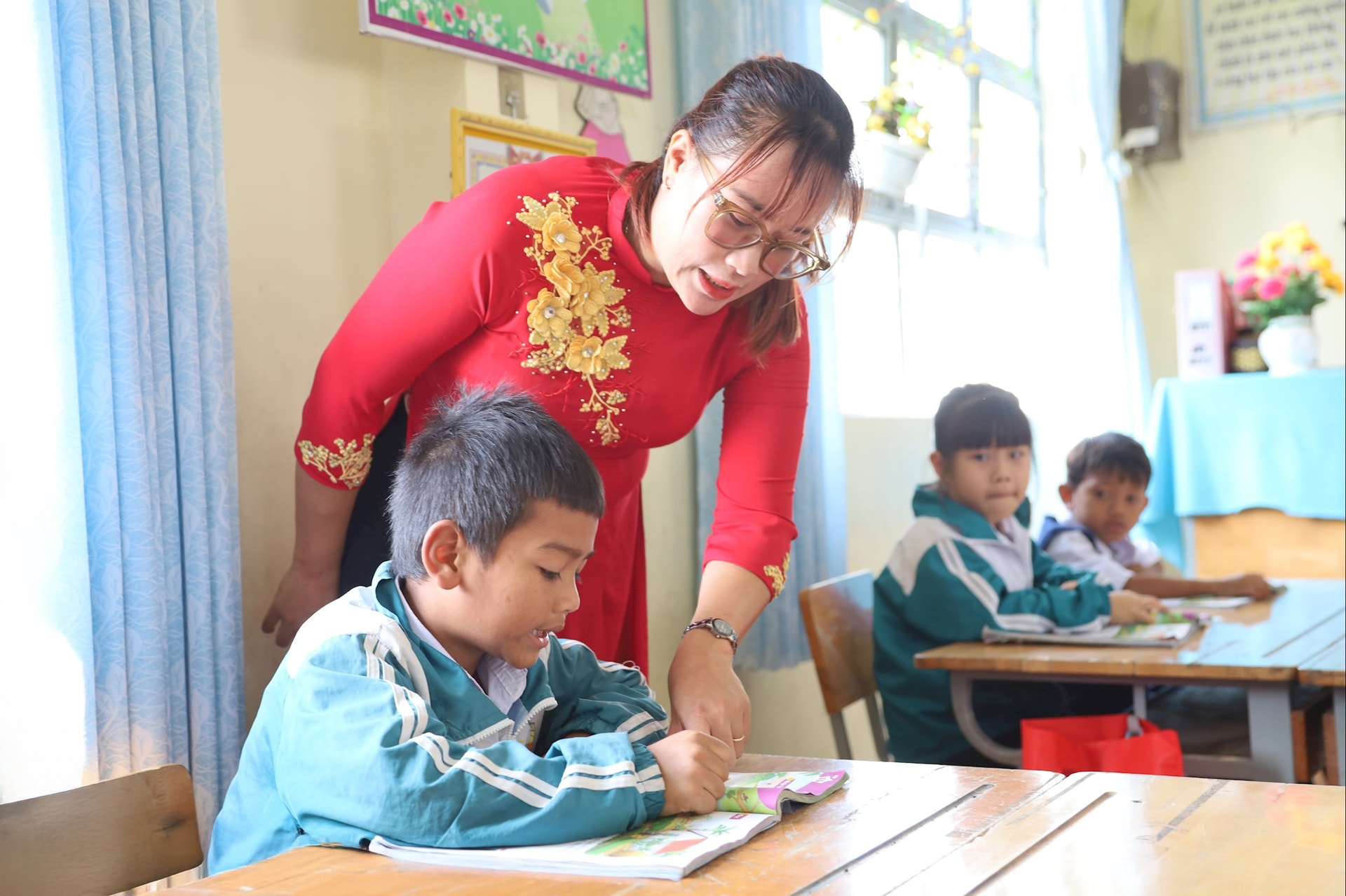 Không chỉ mình em Ka Ngân Lệ, suốt hơn 15 năm công tác, thầy Nghĩa đã đồng hành, vận động nhiều học trò có hoàn cảnh khó khăn đến trường. Với những em chưa thạo tiếng Việt, thầy kiên trì uốn nắn từng phát âm, từng câu nói.
