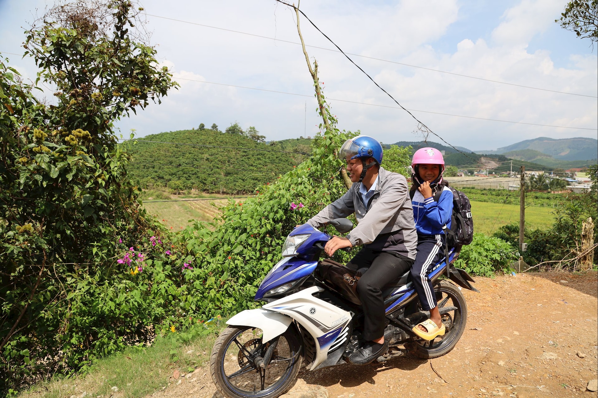 Thầy Phạm Nhân Nghĩa, giáo viên Tổng phụ trách Đội Trường Tiểu học Kim Đồng, xã Đinh Văn Lâm Hà, tỉnh Lâm Đồng thường xuyên đến nhà thăm hỏi, động viên học sinh có hoàn cảnh khó khăn cố gắng trong học tập