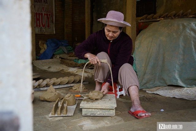 Bà Dương Thị Ca, 63 tuổi, những người thợ gốm cuối cùng còn giữ nghề làm tượng ông Táo ở Thanh Hà, miệt mài giữ "hồn Tết" trong căn nhà không bảng hiệu.