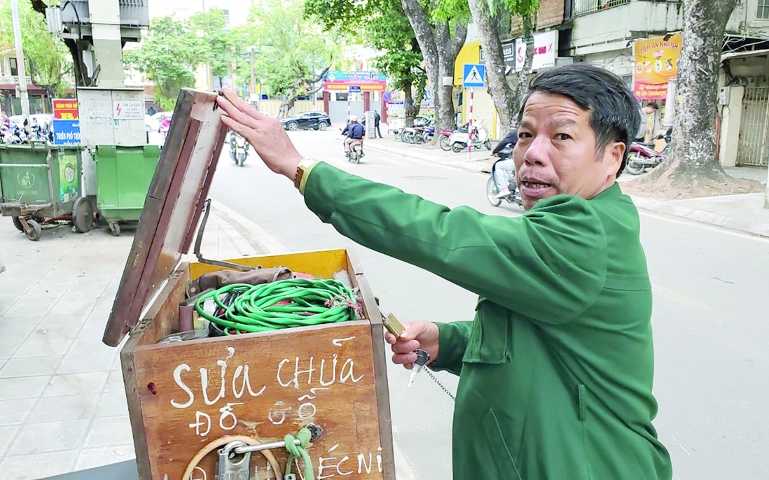 "Trước đây tháng Tết việc làm không hết nhưng khách dạo này ít lắm. Bây giờ người ta lên mạng là dễ dàng tìm được thợ sửa chữa. Chỉ những người lớn tuổi như chúng tôi - những thợ mộc "di động" kém hiểu biết về công nghệ mới phải ra phố đứng. Giờ phố thợ mộc chẳng còn lại mấy người", một người trong nhóm thợ mộc chia sẻ.