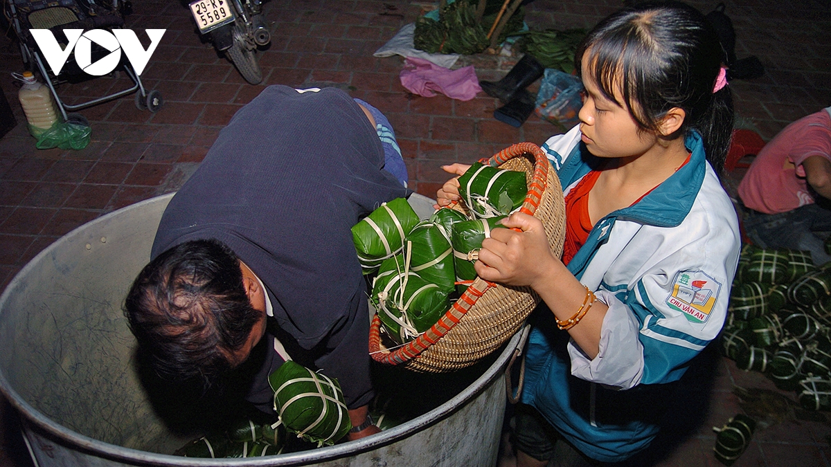 Vào vụ Tết, mỗi hộ làm bánh chưng trong làng gói từ 10.000 đến 15.000 bánh chưng, ước tính, sản lượng cả làng đạt hơn 1 triệu chiếc cung cấp cho thị trường…