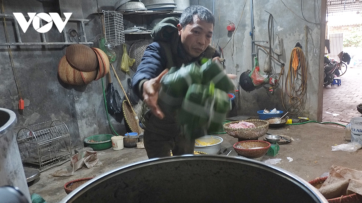 Thời điểm này, làng nghề bánh chưng Tranh Khúc nhộn nhịp hơn bao giờ hết. Từng đoàn xe chở nguyên liệu lá dong, đậu, gạo, thành phẩm vào - ra nhộn nhịp.