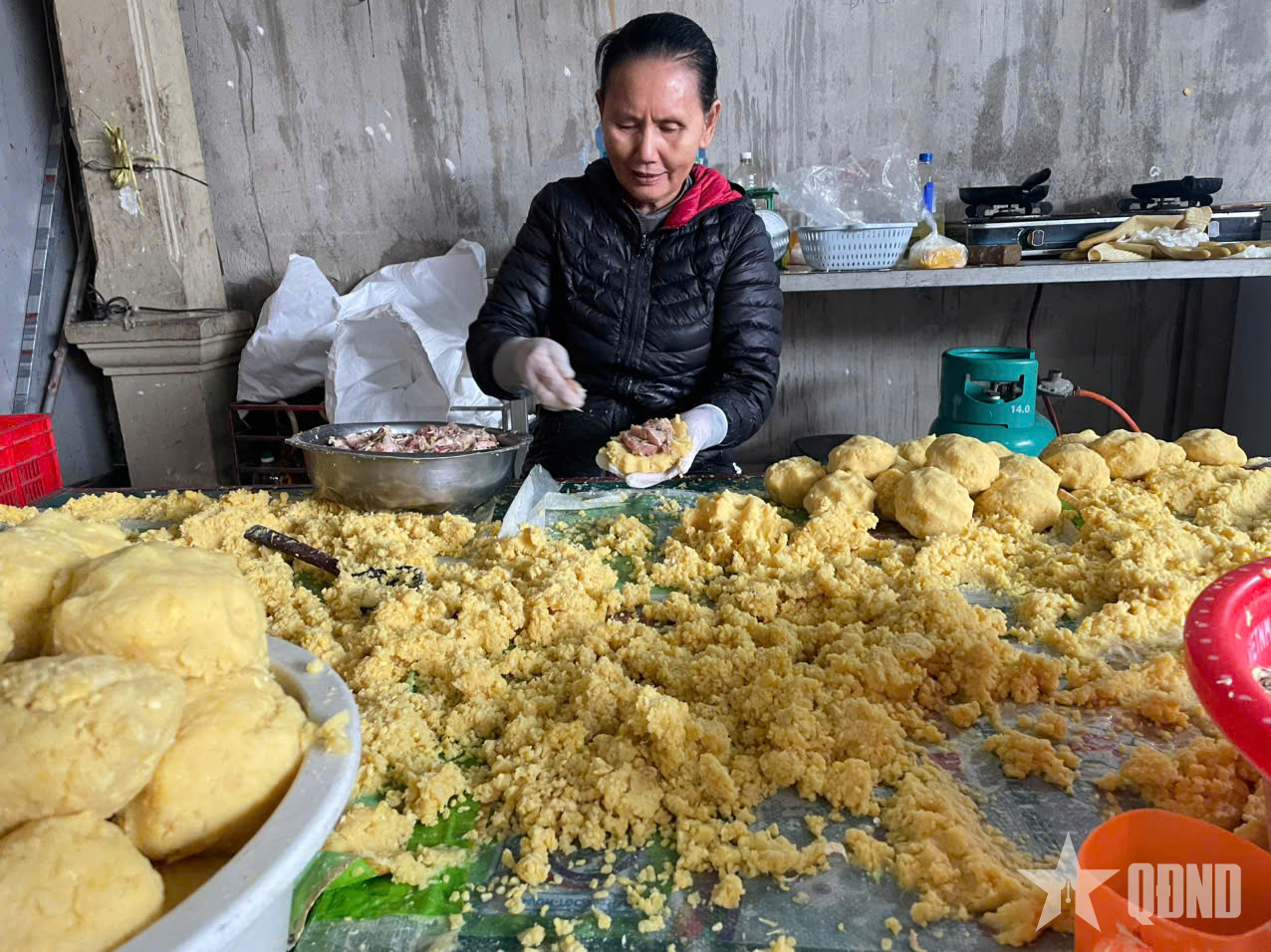 Những ngày này, không khí lao động ở làng Vĩnh Hòa (xã Yên Thành, tỉnh Nghệ An) luôn rộn ràng, tất bật, khẩn trương. Tại các gia đình, hầu hết khoảng không gian hiên nhà, sân nhà được tận dụng làm góc sơ chế nguyên liệu, gói bánh, đặt bếp củi... Từ sáng sớm, người dân đã bắt tay vào vo gạo, đãi đỗ, ướp thịt và rửa lá dong để chuẩn bị cho các mẻ bánh chưng, bánh tét.