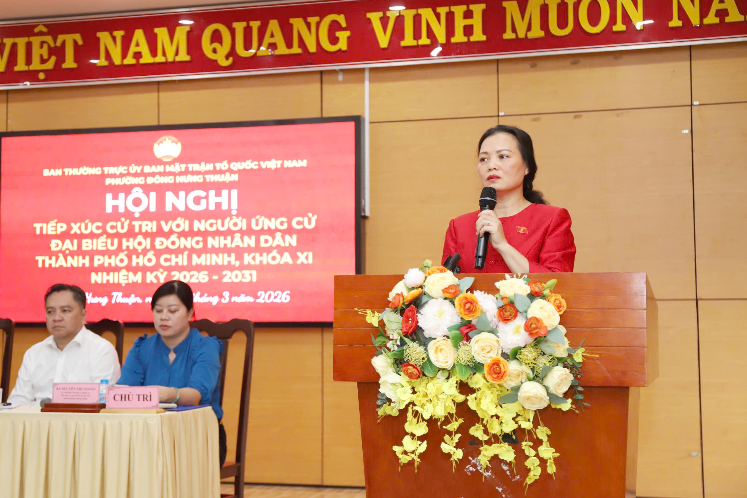 Phó Trưởng Đoàn ĐBQH TP. Hồ Chí Minh Huỳnh Thị Phúc tại hội nghị tiếp xúc với cử tri phường Đông Hưng Thuận